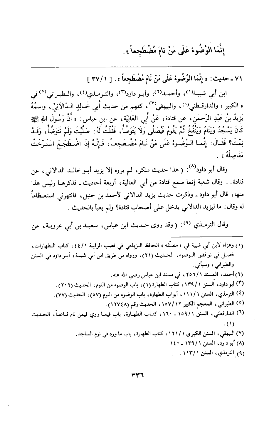 71 - حديث: "إِنَّمَا الوُضُوءُ عَلَى مَنْ نَامَ مُضْطَجِعًا".