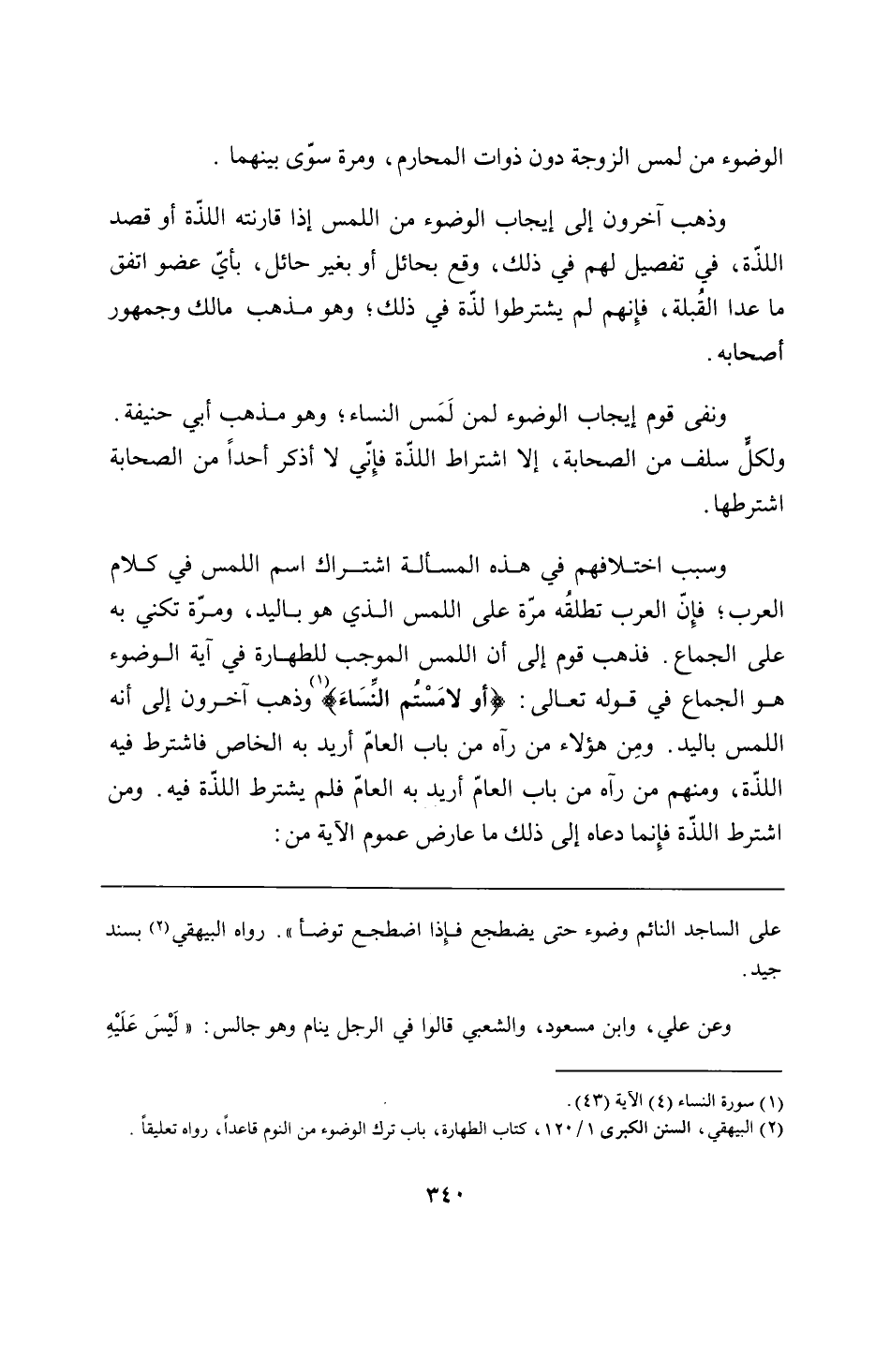على الساجد النائم وضوء حتى يضطجع فإِذا اضطجع توضأ". رواه البيهقي بسند جيد.