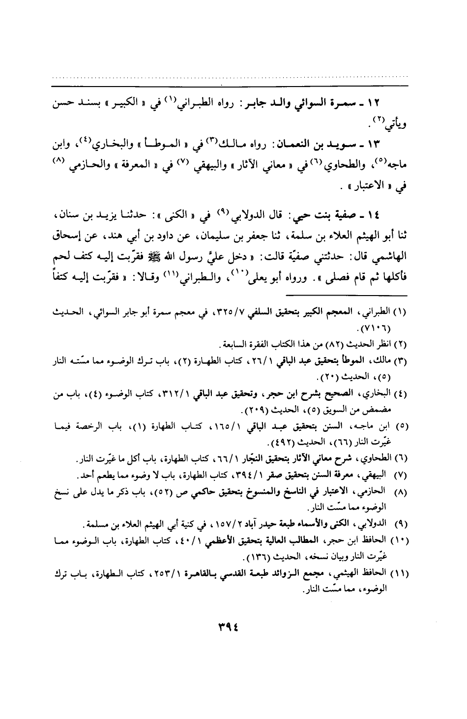 13 - سويد بن النعمان: رواه مالك في "الموطأ" والبخاري، وابن ماجه، والطحاوي في "معاني الآثار" والبيهقي في "المعرفة" والحازمي في "الاعتبار".