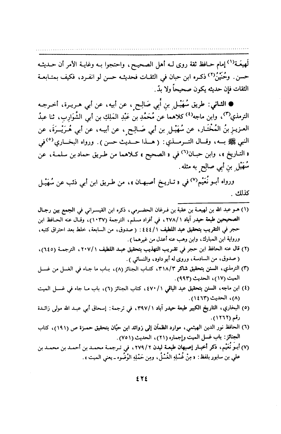 • الثاني: طريق سُهَيْلِ بنِ أبِي صَالِحٍ، عن أبيه، عن أبي هريرة، أخرجه الترمذي، وابن ماجه كلاهما عن مُحَمَّدِ بن عَبْدِ المَلِكِ بن أبي الشَّوَارِبِ، ثنا عبدُ العزيزِ بنُ المُخْتَار، عن سُهَيْلِ بن أبي صَالِحٍ، عن أبيه، عن أبي هُرَيْرَةَ، عن النبي - صلى الله عليه وسلم - به، وقال الترمذي: (هذا حديث حسن). ورواه البخاري في "التاريخ"، وابن حبان في "الصحيح" كلاهما من طريق حماد بن سلمة، عن سُهَيْلِ بنِ أبِي صالِحٍ به مثله.