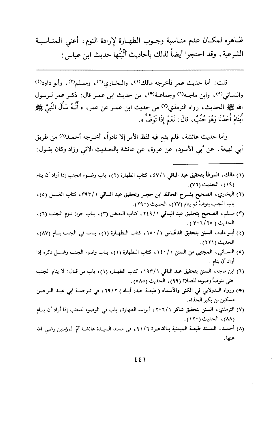 قلت: أما حديث عمر فأخرجه مالك، والبخاري، ومسلم، وأبو داود والنسائي، وابن ماجه وجماعة، من حديث ابن عمر قال: ذكر عمر لرسول الله - صلى الله عليه وسلم - الحديث، رواه الترمذي من حديث ابن عمر عن عمر، "أَنَّهُ سَأَلَ النّبىَّ - صلى الله عليه وسلم - أَينَامُ أَحَدُنَا وَهُوَ جُنُبٌ، قالَ: نَعَمْ إذَا تَوَضَّأَ".