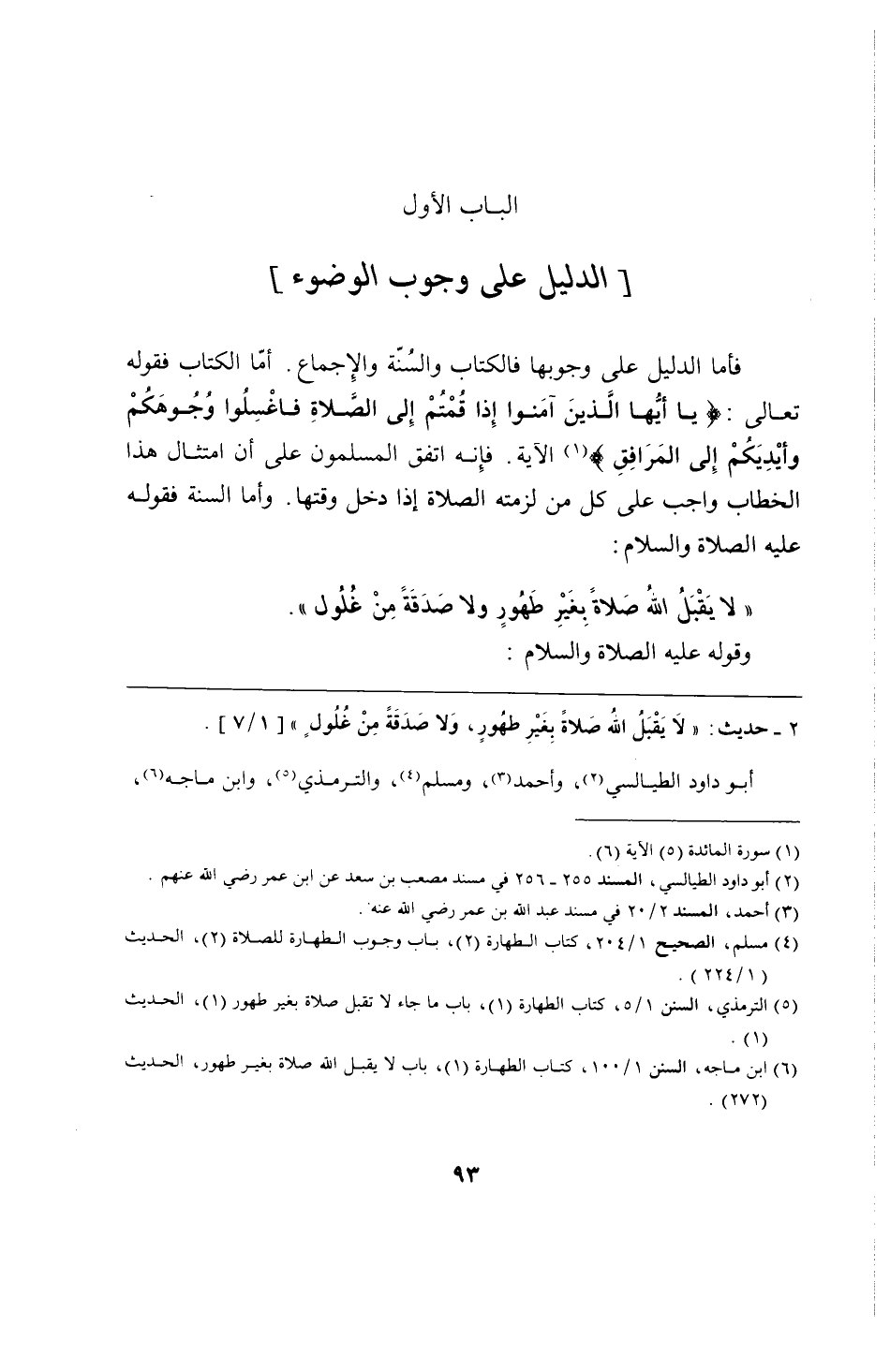 الباب الأول: الدليل على وجوب الوضوء