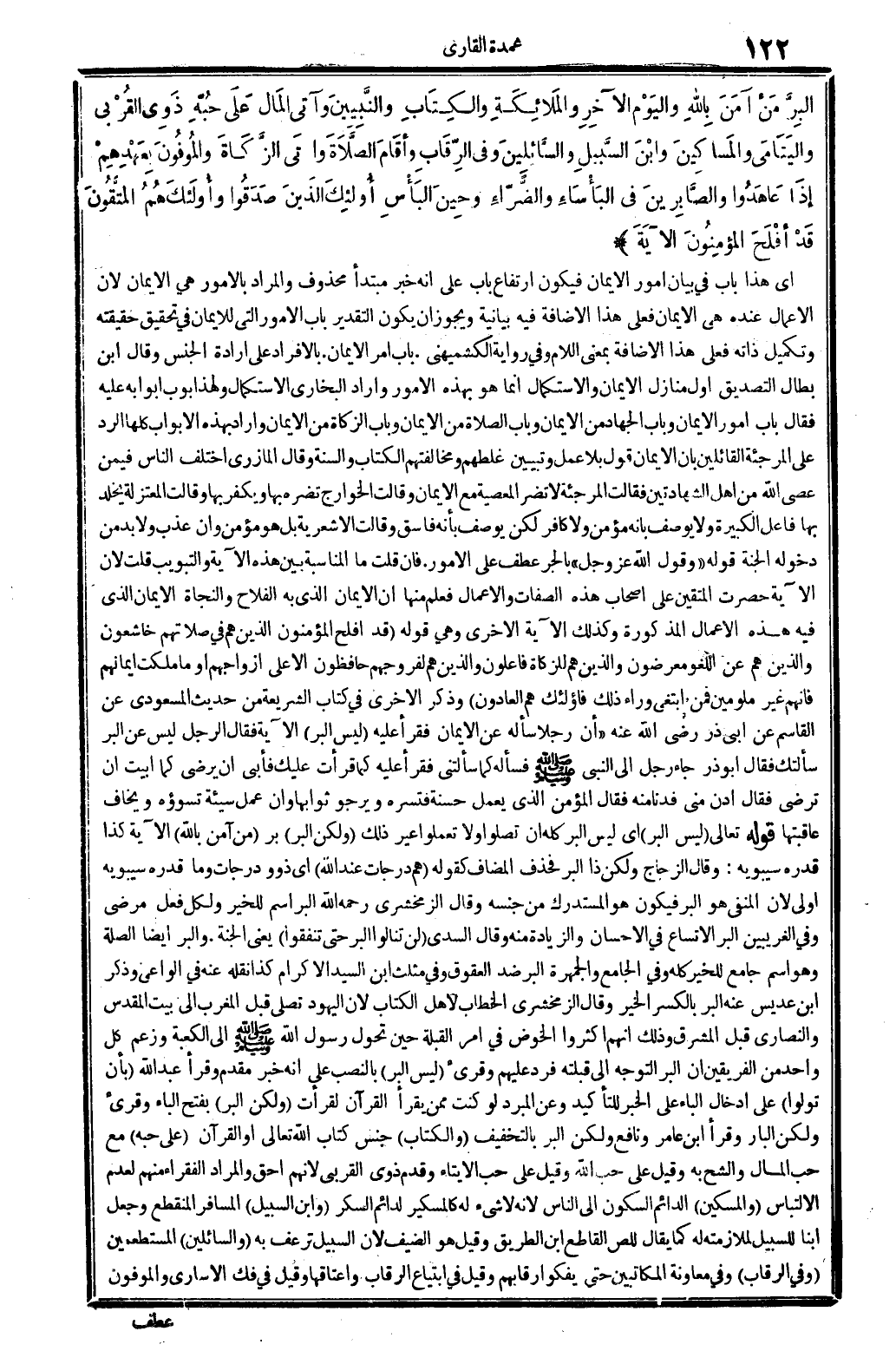 َ البِرَّ مَنْ آمَنَ بِاللَّهِ واليَوْم الآخِرِ والمَلائِكَةِ والكِتَابِ والنَّبِيينَ وَآتى المَال عَلَى حُبّهِ ذَوِي القُرْبى واليَتَامَى والمَساكِينَ وابْنَ السَّبِيلِ والسَّائِلِينَ وَفِي الرِّقَابِ وأقَامَ الصَّلاَةَ وأتَى الزَّكَاةَ والمُوفُونَ بِعَهْدِهِمْ إذَا عَاهَدُوا والصَّابرينَ فِي البَأْسَاءِ والضَّرَاءِ وحِينَ البَأْسِ أُولئِكَ الذَينَ صَدَقُوا وأُولَئكَ هُمُ المتَّقُونَ} (الْبَقَرَة: 177) {قَدْ أفْلَحَ المؤمِنُونَ} (الْمُؤْمِنُونَ: 1) الآيَةَ.
