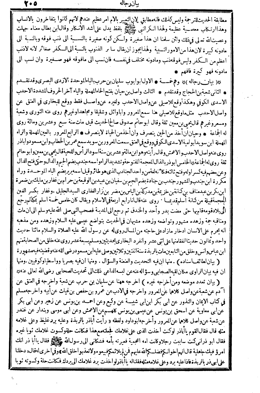 بَيَان رِجَاله: وهم خَمْسَة. الأول: أَبُو أَيُّوب سُلَيْمَان بن حَرْب، بِالْبَاء الْمُوَحدَة، الْأَزْدِيّ الْبَصْرِيّ، وَقد تقدم. الثَّانِي: شُعْبَة بن الْحجَّاج، وَقد تقدم. الثَّالِث: وَاصل بن حَيَّان، بِفَتْح الْحَاء الْمُهْملَة وَالْيَاء آخر الْحُرُوف الْمُشَدّدَة، الأحدب الْأَسدي الْكُوفِي، وَهَكَذَا وَقع للأصيلي: عَن وَاصل الأحدب، وَلغيره: عَن وَاصل فَقَط، وَوَقع للْبُخَارِيّ فِي الْعتْق: عَن وَاصل الأحدب، مثل مَا وَقع للأصيلي هُنَا؛ سمع الْمَعْرُور وَأَبا وَائِل وشقيقا ومجاهدا وَغَيرهم؛ روى عَنهُ الثَّوْريّ وَشعْبَة ومسعر وَغَيرهم؛ قَالَ يحيى بن معِين: ثِقَة، وَقَالَ أَبُو حَاتِم: صَدُوق صَالح الحَدِيث. قيل: مَاتَ سنة سبع وَعشْرين وَمِائَة، روى لَهُ الْجَمَاعَة. وحيان: أَن أَخذ من الْحِين ينْصَرف، وَإِن أَخذ من الْحَيَاة لَا ينْصَرف. الرَّابِع: الْمَعْرُور، بِالْعينِ الْمُهْملَة وَالرَّاء الْمُهْملَة، ابْن سُوَيْد أَبُو أُميَّة الْأَسدي الْكُوفِي، وَوَقع فِي الْعتْق: سَمِعت الْمَعْرُور بن سُوَيْد. سمع عمر بن الْخطاب وَابْن مَسْعُود وَأَبا ذَر، روى عَنهُ وَاصل الأحدب وَالْأَعْمَش، وَقَالَ: رَأَيْته وَهُوَ ابْن مائَة وَعشْرين سنة، أسود الرَّأْس واللحية. قَالَ يحيى بن معِين وَأَبُو حَاتِم: ثِقَة، روى لَهُ الْجَمَاعَة. الْخَامِس: أَبُو ذَر، بِالذَّالِ الْمُعْجَمَة الْمَفْتُوحَة وَتَشْديد الرَّاء، واسْمه جُنْدُب، بِضَم الْجِيم وَالدَّال، وَحكي فتح الدَّال، وَعَن بَعضهم فِيهِ كسر أَوله وَفتح ثالثه، فَكَأَنَّهُ لُغَة من وَاحِد الجنادب الَّذِي هُوَ طَائِر، وَقيل: اسْمه برير، بِضَم الْبَاء الْمُوَحدَة وَرَاء مكررة، ابْن جُنْدُب، وَالْمَشْهُور جُنْدُب بن جُنَادَة، بِضَم الْجِيم، بن سُفْيَان بن عبيد بن الوقيعة بن حرَام بن غفار بن مليك بن ضَمرَة بن بكر بن عبد منَاف بن كنَانَة بن خُزَيْمَة بن مدركة بن الياس بن مُضر بن نزار، الْغِفَارِيّ السَّيِّد الْجَلِيل. وغفار، بِكَسْر الْغَيْن الْمُعْجَمَة، قَبيلَة من كنَانَة، أسلم قَدِيما. رُوِيَ عَنهُ قَالَ: أَنا رَابِع أَرْبَعَة فِي الْإِسْلَام، وَيُقَال: كَانَ خَامِس خَمْسَة، أسلم بِمَكَّة ثمَّ رَجَعَ إِلَى بِلَاد قومه. قَامَ بهَا حَتَّى مَضَت بدر وَأحد وَالْخَنْدَق، ثمَّ رَجَعَ إِلَى الْمَدِينَة، فصحب النَّبِي صلى الله عَلَيْهِ وَسلم، إِلَى أَن مَاتَ، ومناقبه جمة، وزهده مَشْهُور، وتواضعه وزهده مشبهان فِي الحَدِيث بتواضع عِيسَى، عَلَيْهِ السَّلَام، وزهده. وَمن مذْهبه: أَنه يحرم على الْإِنْسَان ادخار مَا زَاد على حَاجته من المَال. رُوِيَ لَهُ عَن رَسُول الله صلى الله عَلَيْهِ وَسلم، مِائَتَا حَدِيث وَاحِد وَثَمَانُونَ حَدِيثا، اتفقَا مِنْهَا على اثْنَي عشر، وَانْفَرَدَ البُخَارِيّ بحديثين، وَمُسلم بسبعة عشر. روى عَنهُ خلق من الصَّحَابَة مِنْهُم: ابْن عَبَّاس وَأنس وَخلق من التَّابِعين، مَاتَ بالربذة سنة اثْنَتَيْنِ وَثَلَاثِينَ، وَصلى عَلَيْهِ ابْن مَسْعُود، رَضِي الله عَنهُ، وَقَضيته فِيهِ مَشْهُورَة.
