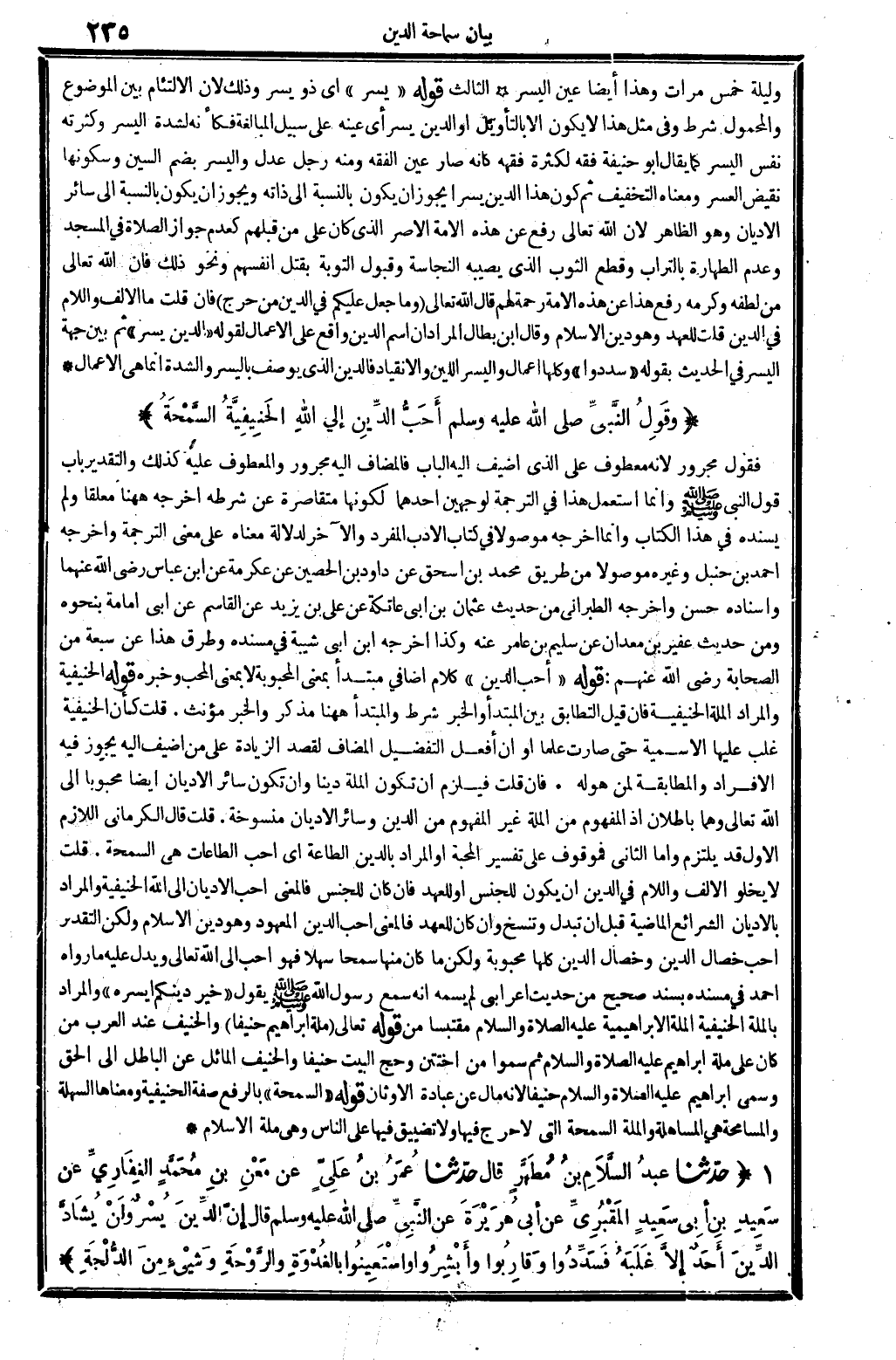 وقَولُ النَّبيَّ صلى الله عَلَيْهِ وَسلم أحَبُّ الدِّينِ إِلَى اللَّهِ الحَنِيفيَّةُ السَّمْحَةُ