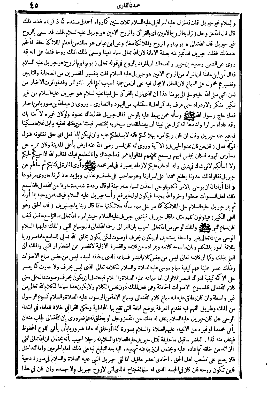 وَالسَّلَام غير جِبْرِيل قلت قد نزل عَلَيْهِ إسْرَافيل عَلَيْهِ السَّلَام ثَلَاث سِنِين كَمَا رَوَاهُ أَحْمد فِي مُسْنده كَمَا ذَكرْنَاهُ فَعِنْدَ ذَلِك قَالَ قَالَ الله عز وَجل {نزل بِهِ الرّوح الْأمين} أَي بِالْقُرْآنِ وَالروح الْأمين هُوَ جِبْرِيل عَلَيْهِ السَّلَام. قلت قد سمي بِالروحِ غير جِبْرِيل قَالَ الله تَعَالَى {يَوْم يقوم الرّوح وَالْمَلَائِكَة صفا} وَعَن ابْن عَبَّاس هُوَ ملك من أعظم الْمَلَائِكَة خلقا فأفحم عِنْد ذَلِك فَقلت جِبْرِيل قد تميز عَنهُ بِصفة الْأَمَانَة لِأَن الله تَعَالَى سَمَّاهُ أَمينا وسمى ذَلِك الْملك روحا فَقَط على أَنه قد روى عَن الشّعبِيّ وَسَعِيد بن جُبَير وَالضَّحَّاك أَن المُرَاد بِالروحِ فِي قَوْله تَعَالَى {يَوْم يقوم الرّوح} هُوَ جِبْرِيل عَلَيْهِ السَّلَام فَقَالَ من أَيْن علمنَا أَن المُرَاد من الرّوح الْأمين هُوَ جِبْرِيل عَلَيْهِ السَّلَام قلت بتفسير الْمُفَسّرين من الصَّحَابَة وَالتَّابِعِينَ وتفسيرهم مَحْمُول على السماع لِأَن الْعقل لَا مجَال فِيهِ على أَن من جملَة أَسبَاب الْعلم الْخَبَر الْمُتَوَاتر وَقد تَوَاتَرَتْ الْأَخْبَار من لدن النَّبِي صلى الله عَلَيْهِ وَسلم إِلَى يَوْمنَا هَذَا أَن الَّذِي نزل بِالْقُرْآنِ على نَبينَا عَلَيْهِ السَّلَام هُوَ جِبْرِيل عَلَيْهِ السَّلَام من غير نَكِير مُنكر وَلَا رد راد حَتَّى عرف بِذكر أهل الْكتاب من الْيَهُود وَالنَّصَارَى. وَرُوِيَ أَن عبد الله بن صوريا من أَحْبَار فدك حَاج رَسُول الله صلى الله عَلَيْهِ وَسلم وَسَأَلَهُ عَمَّن يهْبط عَلَيْهِ بِالْوَحْي فَقَالَ جِبْرِيل فَقَالَ ذَاك عدونا وَلَو كَانَ غَيره لآمَنَّا بك وَقد عَادَانَا مرَارًا وأشدها أَنه أنزل على نَبينَا أَن بَيت الْمُقَدّس سيخربه بخْتنصر فَبَعَثنَا من يقْتله فَلَقِيَهُ بِبَابِل غُلَاما مِسْكينا فَدفع عَنهُ جِبْرِيل وَقَالَ إِن كَانَ ربكُم أمره بِهَلَاكِكُمْ فَإِنَّهُ لَا يسلطكم عَلَيْهِ وَإِن لم يكن إِيَّاه فعلى أَي حق تَقْتُلُونَهُ فَنزل قَوْله تَعَالَى {قل من كَانَ عدوا لجبريل} الْآيَة وَرُوِيَ أَنه كَانَ لعمر رَضِي الله عَنهُ أَرض بِأَعْلَى الْمَدِينَة وَكَانَ مَمَره على مدارس الْيَهُود فَكَانَ يجلس إِلَيْهِم وَيسمع كَلَامهم فَقَالُوا يَا عمر قد أَحْبَبْنَاك وَإِنَّا لَنَطْمَع فِيك فَقَالَ وَالله لَا أُجِيبكُم لِحُبِّكُمْ وَلَا أَسأَلكُم لِأَنِّي شَاك فِي ديني وَإِنَّمَا أَدخل عَلَيْكُم لِأَزْدَادَ بَصِيرَة فِي أَمر مُحَمَّد صلى الله عَلَيْهِ وَسلم وَأرى إثارة فِي كتابكُمْ ثمَّ سَأَلَهُمْ عَن جِبْرِيل فَقَالُوا ذَلِك عدونا يطلع مُحَمَّدًا على أَسْرَارنَا وَهُوَ صَاحب كل خسف وَعَذَاب وَيُؤَيّد مَا ذكرنَا مَا رُوِيَ مَرْفُوعا إِذا أَرَادَ الله أَن يوحي بِالْأَمر تكلم بِالْوَحْي أخذت السَّمَاء مِنْهُ رَجْفَة أَو قَالَ رعدة شَدِيدَة خوفًا من الله تَعَالَى فَإِذا سمع ذَلِك أهل السَّمَوَات صعقوا وخروا لله سجدا فَيكون أول مَا يرفع رَأسه جِبْرِيل عَلَيْهِ السَّلَام فيكلمه من وحيه بِمَا أَرَادَ ثمَّ يمر جِبْرِيل عَلَيْهِ السَّلَام على الْمَلَائِكَة كلما مر على سَمَاء سَأَلَهُ ملائكتها مَاذَا قَالَ رَبنَا يَا جِبْرِيل {قَالَ الْحق وَهُوَ الْعلي الْكَبِير} فَيَقُولُونَ كلهم مثل مَا قَالَ جِبْرِيل فينتهي جِبْرِيل عَلَيْهِ السَّلَام حَيْثُ أمره الله تَعَالَى. التَّاسِع مَا قيل كَيفَ كَانَ سَماع النَّبِي صلى الله عَلَيْهِ وَسلم وَالْملك الْوَحْي من الله تَعَالَى أُجِيب بِأَن الْغَزالِيّ رَحمَه الله تَعَالَى قَالَ وَسَمَاع النَّبِي وَالْملك عَلَيْهِمَا السَّلَام الْوَحْي من الله تَعَالَى بِغَيْر وَاسِطَة يَسْتَحِيل أَن يكون بِحرف أَو صَوت لَكِن يكون بِخلق الله تَعَالَى للسامع علما ضَرُورِيًّا بِثَلَاثَة أُمُور بالمتكلم وَبِأَن مَا سَمعه كَ