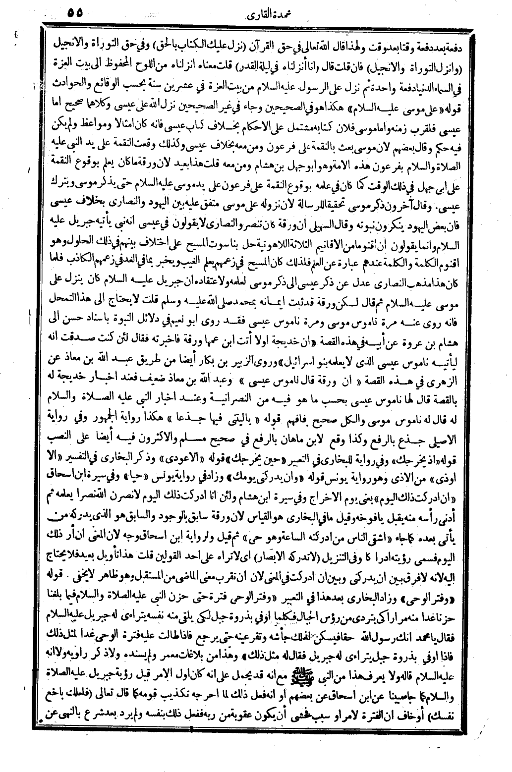 دفْعَة بعد دفْعَة وقتا بعد وَقت وَلِهَذَا قَالَ الله تَعَالَى فِي حق الْقُرْآن {نزل عَلَيْك الْكتاب بِالْحَقِّ} وَفِي حق التَّوْرَاة وَالْإِنْجِيل {وَأنزل التَّوْرَاة وَالْإِنْجِيل} فَإِن قلت قَالَ {إِنَّا أَنزَلْنَاهُ فِي لَيْلَة الْقدر} قلت مَعْنَاهُ أَنزَلْنَاهُ من اللَّوْح الْمَحْفُوظ إِلَى بَيت الْعِزَّة فِي السَّمَاء الدُّنْيَا دفْعَة وَاحِدَة ثمَّ نزل على الرَّسُول صلى الله عَلَيْهِ وَسلم من بَيت الْعِزَّة فِي عشْرين سنة بِحَسب الوقائع والحوادث قَوْله على مُوسَى عَلَيْهِ السَّلَام هَكَذَا هُوَ فِي الصَّحِيحَيْنِ وَجَاء فِي غير الصَّحِيحَيْنِ نزل الله على عِيسَى وَكِلَاهُمَا صَحِيح أما عِيسَى فلقرب زَمَنه وَأما مُوسَى فَلِأَن كِتَابه مُشْتَمل على الْأَحْكَام بِخِلَاف كتاب عِيسَى فَإِنَّهُ كَانَ أَمْثَالًا ومواعظ وَلم يكن فِيهِ حكم وَقَالَ بَعضهم لِأَن مُوسَى بعث بالنقمة على فِرْعَوْن وَمن مَعَه بِخِلَاف عِيسَى وَكَذَلِكَ وَقعت النقمَة على يَد النَّبِي صلى الله عَلَيْهِ وَسلم بفرعون هَذِه الْأمة وَهُوَ أَبُو جهل بن هِشَام وَمن مَعَه قلت هَذَا بعيد لِأَن ورقة مَا كَانَ يعلم بِوُقُوع النقمَة على أبي جهل فِي ذَلِك الْوَقْت كَمَا كَانَ فِي علمه بِوُقُوع النقمَة على فِرْعَوْن على يَد مُوسَى عَلَيْهِ السَّلَام حَتَّى يذكر مُوسَى وَيتْرك عِيسَى. وَقَالَ آخَرُونَ ذكر مُوسَى تَحْقِيقا للرسالة لِأَن نُزُوله على مُوسَى مُتَّفق عَلَيْهِ بَين الْيَهُود وَالنَّصَارَى بِخِلَاف عِيسَى فَإِن بعض الْيَهُود يُنكرُونَ نبوته وَقَالَ السُّهيْلي أَن ورقة كَانَ تنصر وَالنَّصَارَى لَا يَقُولُونَ فِي عِيسَى أَنه نَبِي يَأْتِيهِ جِبْرِيل عَلَيْهِ السَّلَام وَإِنَّمَا يَقُولُونَ أَن أقنوما من الأقانيم الثَّلَاثَة اللاهوتية حل بناسوت الْمَسِيح على اخْتِلَاف بَينهم فِي ذَلِك الْحُلُول وَهُوَ أقنوم الْكَلِمَة والكلمة عِنْدهم عبارَة عَن الْعلم فَلذَلِك كَانَ الْمَسِيح فِي زعمهم يعلم الْغَيْب ويخبر بِمَا فِي الْغَد فِي زعمهم الْكَاذِب فَلَمَّا كَانَ هَذَا مَذْهَب النَّصَارَى عدل عَن ذكر عِيسَى إِلَى ذكر مُوسَى لعلمه ولاعتقاده أَن جِبْرِيل عَلَيْهِ السَّلَام كَانَ ينزل على مُوسَى عَلَيْهِ السَّلَام ثمَّ قَالَ لَكِن ورقة قد ثَبت إيمَانه بِمُحَمد صلى الله عَلَيْهِ وَسلم قلت لَا يحْتَاج إِلَى هَذَا التمحل فَإِنَّهُ روى عَنهُ مرّة ناموس مُوسَى وَمرَّة ناموس عِيسَى فقد روى أَبُو نعيم فِي دَلَائِل النُّبُوَّة بِإِسْنَاد حسن إِلَى هِشَام بن عُرْوَة عَن أَبِيه فِي هَذِه الْقِصَّة أَن خَدِيجَة أَولا أَتَت ابْن عَمها ورقة فَأَخْبَرته فَقَالَ لَئِن كنت صدقت إِنَّه ليَأْتِيه ناموس عِيسَى الَّذِي لَا يُعلمهُ بَنو إِسْرَائِيل وروى الزبير بن بكار أَيْضا من طَرِيق عبد الله بن معَاذ عَن الزُّهْرِيّ فِي هَذِه الْقِصَّة أَن ورقة قَالَ ناموس عِيسَى وَعبد الله بن معَاذ ضَعِيف فَعِنْدَ إِخْبَار خَدِيجَة لَهُ بالقصة قَالَ لَهَا ناموس عِيسَى بِحَسب مَا هُوَ فِيهِ من النَّصْرَانِيَّة وَعند إِخْبَار النَّبِي صلى الله عَلَيْهِ وَسلم لَهُ قَالَ لَهُ ناموس مُوسَى وَالْكل صَحِيح فَافْهَم قَوْله يَا لَيْتَني فِيهَا جذعا هَكَذَا رِوَايَة الْجُمْهُور وَفِي رِوَايَة الْأصيلِيّ جذع بِالرَّفْع وَكَذَا وَقع لِابْنِ ماهان بِالرَّفْع فِي صَحِيح مُسلم وَالْأَكْثَرُونَ فِيهِ أَيْضا على النصب قَوْله إِذْ يخْرجك وَفِي رِوَايَة للْبُخَارِيّ فِي التَّعْبِير حِين يخْرجك قَوْله الأعودي وَذكر البُخَارِيّ فِي التَّفْسِير إِلَّا أوذي من الْأَذَى وَهُوَ رِوَايَة يُونُس قَوْله وَإِن يدركني يَوْمك وَزَاد فِي رِوَايَة يُونُس حَيا وَفِي سيرة ابْن إِسْحَاق إِن أدْركْت ذَلِك الْيَوْم يَعْنِي يَوْم الْإِخْرَاج وَفِي سيرة ابْن هِشَام وَلَئِن أَنا أدْركْت ذَلِك الْيَو