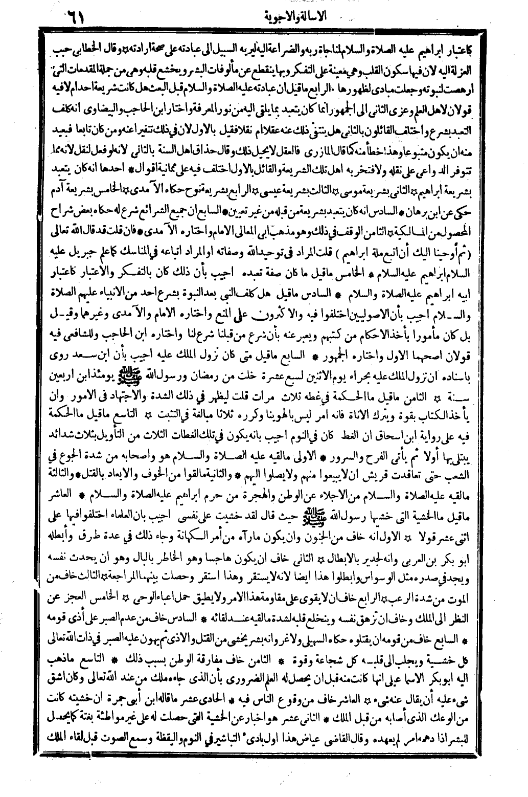 كاعتبار إِبْرَاهِيم عَلَيْهِ الصَّلَاة وَالسَّلَام لمناجاة ربه والضراعة إِلَيْهِ ليريه السَّبِيل إِلَى عِبَادَته على صِحَة إِرَادَته وَقَالَ الْخطابِيّ حبب الْعُزْلَة إِلَيْهِ لِأَن فِيهَا سُكُون الْقلب وَهِي مُعينَة على التفكر وَبهَا يَنْقَطِع عَن مألوفات الْبشر ويخشع قلبه وَهِي من جملَة الْمُقدمَات الَّتِي أرهصت لنبوته وَجعلت مبادي لظهورها. الرَّابِع مَا قيل أَن ... عِبَادَته عَلَيْهِ وَسلم قبل الْبَعْث هَل كَانَت شَرِيعَة أحد أم لَا فِيهِ قَولَانِ لأهل الْعلم وعزى الثَّانِي إِلَى الْجُمْهُور إِنَّمَا كَانَ يتعبد بِمَا يلقى إِلَيْهِ من نور الْمعرفَة وَاخْتَارَ ابْن الْحَاجِب والبيضاوي أَنه كلف التَّعَبُّد بشرع وَاخْتلف الْقَائِلُونَ بِالثَّانِي هَل يَنْتَفِي ذَلِك عَنهُ عقلا أم نقلا فَقيل بِالْأولِ لِأَن فِي ذَلِك تنفيرا عَنهُ وَمن كَانَ تَابعا فبعيد مِنْهُ أَن يكون متبوعا وَهَذَا خطأ مِنْهُ كَمَا قَالَ الْمَازرِيّ فالعقل لَا يحِيل ذَلِك وَقَالَ حذاق أهل السّنة بِالثَّانِي لِأَنَّهُ لَو فعل لنقل لِأَنَّهُ مِمَّا تتوفر الدَّوَاعِي على نَقله ولافتخر بِهِ أهل تِلْكَ الشَّرِيعَة وَالْقَائِل بِالْأولِ اخْتلف فِيهِ على ثَمَانِيَة أَقْوَال أَحدهَا أَنه كَانَ يتعبد بشريعة إِبْرَاهِيم الثَّانِي بشريعة مُوسَى الثَّالِث بشريعة عِيسَى الرَّابِع بشريعة نوح حَكَاهُ الْآمِدِيّ الْخَامِس بشريعة آدم حُكيَ عَن ابْن برهَان السَّادِس أَنه كَانَ يتعبد بشريعة من قبله من غير تعْيين السَّابِع أَن جَمِيع الشَّرَائِع شرع لَهُ حَكَاهُ بعض شرَّاح الْمَحْصُول من الْمَالِكِيَّة الثَّامِن الْوَقْف فِي ذَلِك وَهُوَ مَذْهَب أبي الْمَعَالِي الإِمَام وَاخْتَارَهُ الْآمِدِيّ فَإِن قلت قد قَالَ الله تَعَالَى {ثمَّ أَوْحَينَا إِلَيْك أَن اتبع مِلَّة إِبْرَاهِيم} قلت المُرَاد فِي تَوْحِيد الله وَصِفَاته أَو المُرَاد اتِّبَاعه فِي الْمَنَاسِك كَمَا علم جِبْرِيل عَلَيْهِ السَّلَام إِبْرَاهِيم عَلَيْهِ السَّلَام الْخَامِس مَا قيل مَا كَانَ صفة تعبده أُجِيب بِأَن ذَلِك كَانَ بالتفكر وَالِاعْتِبَار كاعتبار أَبِيه إِبْرَاهِيم عَلَيْهِ الصَّلَاة وَالسَّلَام السَّادِس مَا قيل هَل كلف النَّبِي بعد النُّبُوَّة بشرع أحد من الْأَنْبِيَاء عَلَيْهِم الصَّلَاة وَالسَّلَام أُجِيب بِأَن الْأُصُولِيِّينَ اخْتلفُوا فِيهِ وَالْأَكْثَرُونَ على الْمَنْع وَاخْتَارَهُ الإِمَام والآمدي وَغَيرهمَا وَقيل بل كَانَ مَأْمُورا بِأخذ الْأَحْكَام من كتبهمْ ويعبر عَنهُ بِأَن شرع من قبلنَا شرع لنا وَاخْتَارَهُ ابْن الْحَاجِب وَللشَّافِعِيّ فِيهِ قَولَانِ أصَحهمَا الأول وَاخْتَارَهُ الْجُمْهُور السَّابِع مَا قيل مَتى كَانَ نزُول الْملك عَلَيْهِ أُجِيب بِأَن ابْن سعد روى بِإِسْنَادِهِ أَن نزُول الْملك عَلَيْهِ بحراء يَوْم الْإِثْنَيْنِ لسبع عشرَة خلت من رَمَضَان وَرَسُول الله صلى الله عَلَيْهِ وَسلم يَوْمئِذٍ ابْن أَرْبَعِينَ سنة الثَّامِن مَا قيل مَا الْحِكْمَة فِي غطه ثَلَاث مَرَّات قلت ليظْهر فِي ذَلِك الشدَّة وَالِاجْتِهَاد فِي الْأُمُور وَأَن يَأْخُذ الْكتاب بِقُوَّة وَيتْرك الأناة فَإِنَّهُ أَمر لَيْسَ بالهوينا وكرره ثَلَاثًا مُبَالغَة فِي التثبت التَّاسِع مَا قيل مَا الْحِكْمَة فِيهِ على رِوَايَة ابْن إِسْحَاق أَن الغط كَانَ فِي النّوم أُجِيب بِأَنَّهُ يكون فِي تِلْكَ الغطات الثَّلَاث من التَّأْوِيل بِثَلَاث شَدَائِد يبتلى بهَا أَولا ثمَّ يَأْتِي الْفَرح وَالسُّرُور الأولى مَا لقِيه صلى الله عَلَيْهِ وَسلم هُوَ وَأَصْحَابه من شدَّة الْجُوع فِي الشّعب حَتَّى تعاقدت قُرَيْش أَن لَا يبيعوا مِنْهُم وَلَا يصلوا إِلَيْهِم وَالثَّانيَِة مَا لقوا من الْخَوْف والإيعاد بِالْقَتْلِ وَالثَّالِثَة مَا لقِيه صلى الله عَلَيْهِ وَسلم من الإجلاء عَن الو