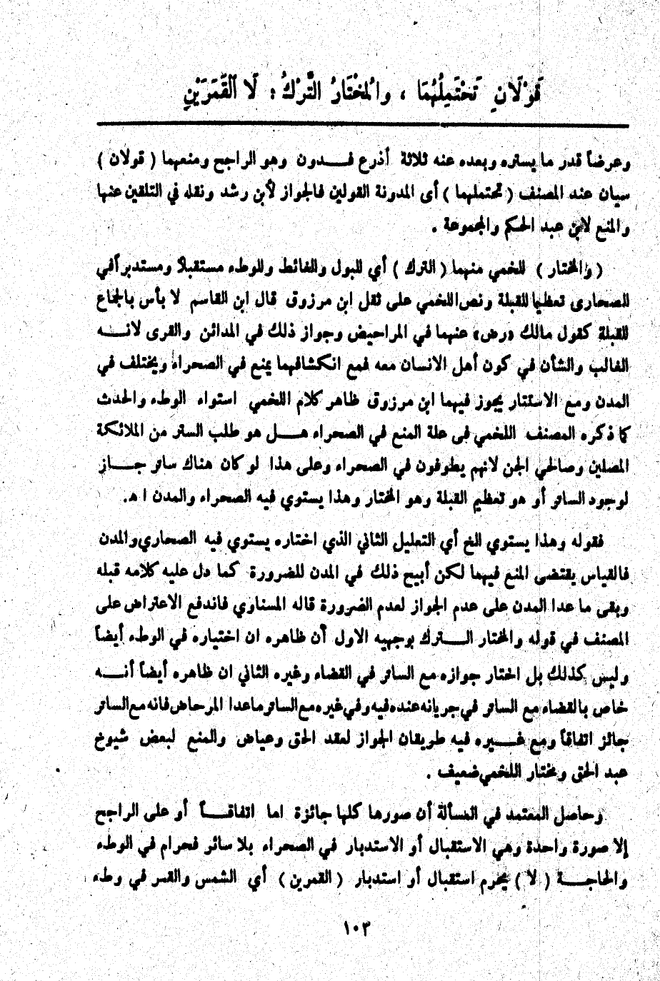 قَوْلَانِ تَحْتَمِلهُمَا وَالْمُخْتَارُ التَّرْكُ: لَا الْقَمَرَيْنِ