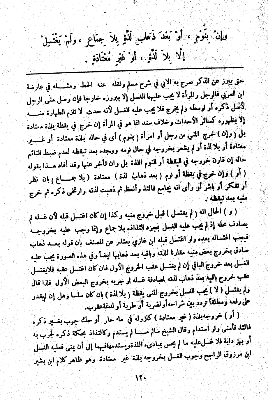 ـــــــــــــــــــــــــــــQحَتَّى يَبْرُزَ عَنْ الذَّكَرِ صَرَّحَ بِهِ الْأَبِيُّ فِي شَرْحِ مُسْلِمٍ وَنَقَلَهُ عَنْهُ الْحَطّ وَمِثْلُهُ فِي عَارِضَةَ ابْنِ الْعَرَبِيِّ فَالرَّجُلُ وَالْمَرْأَةُ لَا يَجِبُ عَلَيْهِمَا الْغَسْلُ إلَّا بِبُرُوزِهِ خَارِجًا فَإِنْ وَصَلَ مَنِيُّ الرَّجُلِ لِأَصْلِ ذَكَرِهِ أَوْ لِوَسَطِهِ وَلَمْ يَخْرُجْ فَلَا يَجِبُ عَلَيْهِ الْغَسْلُ لِأَنَّهُ حَدَثٌ لَا تَلْزَمُ الطَّهَارَةُ مِنْهُ إلَّا بِظُهُورِهِ كَسَائِرِ الْأَحْدَاثِ، وَخِلَافُ سَنَدٍ إنَّمَا هُوَ فِي الْمَرْأَةِ إنْ خَرَجَ فِي يَقِظَةٍ بِلَذَّةٍ مُعْتَادَةٍ بَلْ (وَإِنْ) خَرَجَ الْمَنِيُّ مِنْ رَجُلٍ أَوْ امْرَأَةٍ (بِنَوْمٍ) أَيْ فِي حَالِهِ بِلَذَّةٍ مُعْتَادَةٍ أَوْ غَيْرِ مُعْتَادَةٍ أَوْ بِلَا لَذَّةٍ أَوْ لَمْ يَشْعُرْ بِخُرُوجِهِ فِي حَالِ نَوْمِهِ وَوَجَدَهُ بَعْدَ تَيَقُّظِهِ لِعَدَمِ ضَبْطِ النَّائِمِ إنْ قَارَنَ خُرُوجَهُ فِي الْيَقِظَةِ أَوْ النَّوْمِ اللَّذَّةُ بَلْ وَإِنْ تَأَخَّرَ عَنْهَا وَقَدْ أَفَادَ هَذَا بِقَوْلِهِ