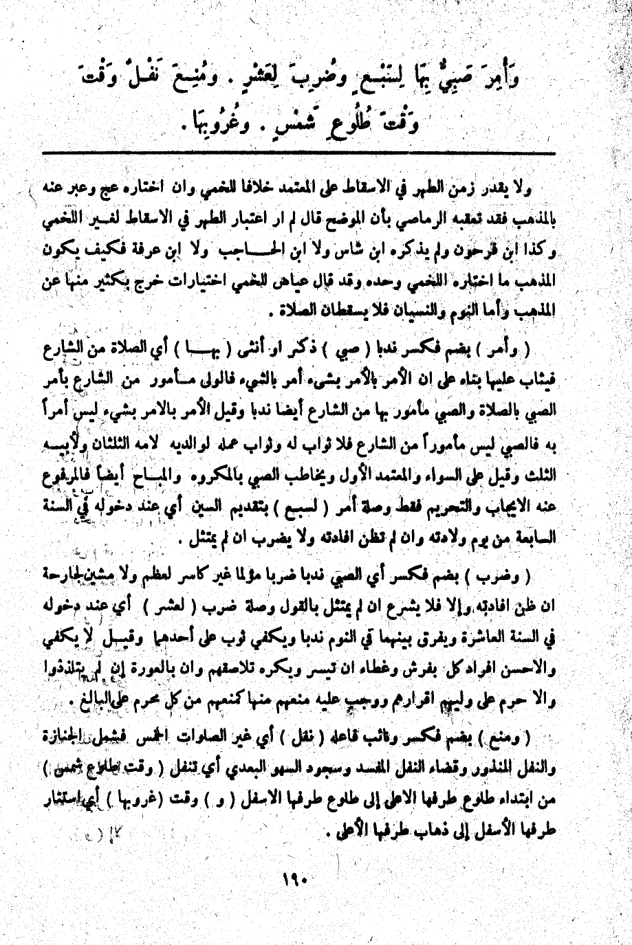 وَأُمِرَ صَبِيٌّ بِهَا لِسَبْعٍ وَضُرِبَ لِعَشْرٍ.