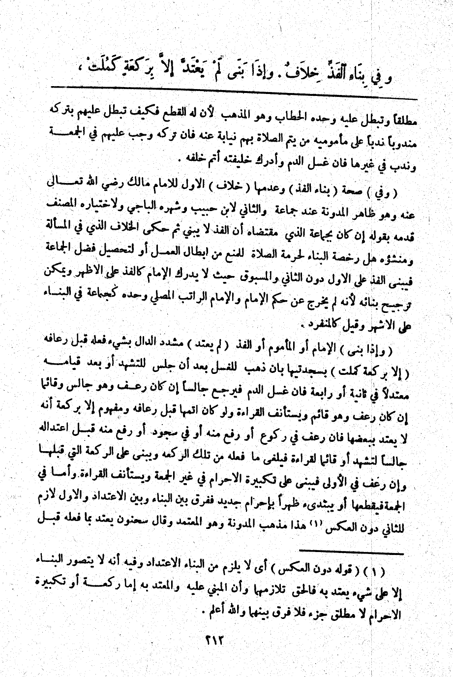 وَفِي بِنَاءِ الْفَذِّ خِلَافٌ.