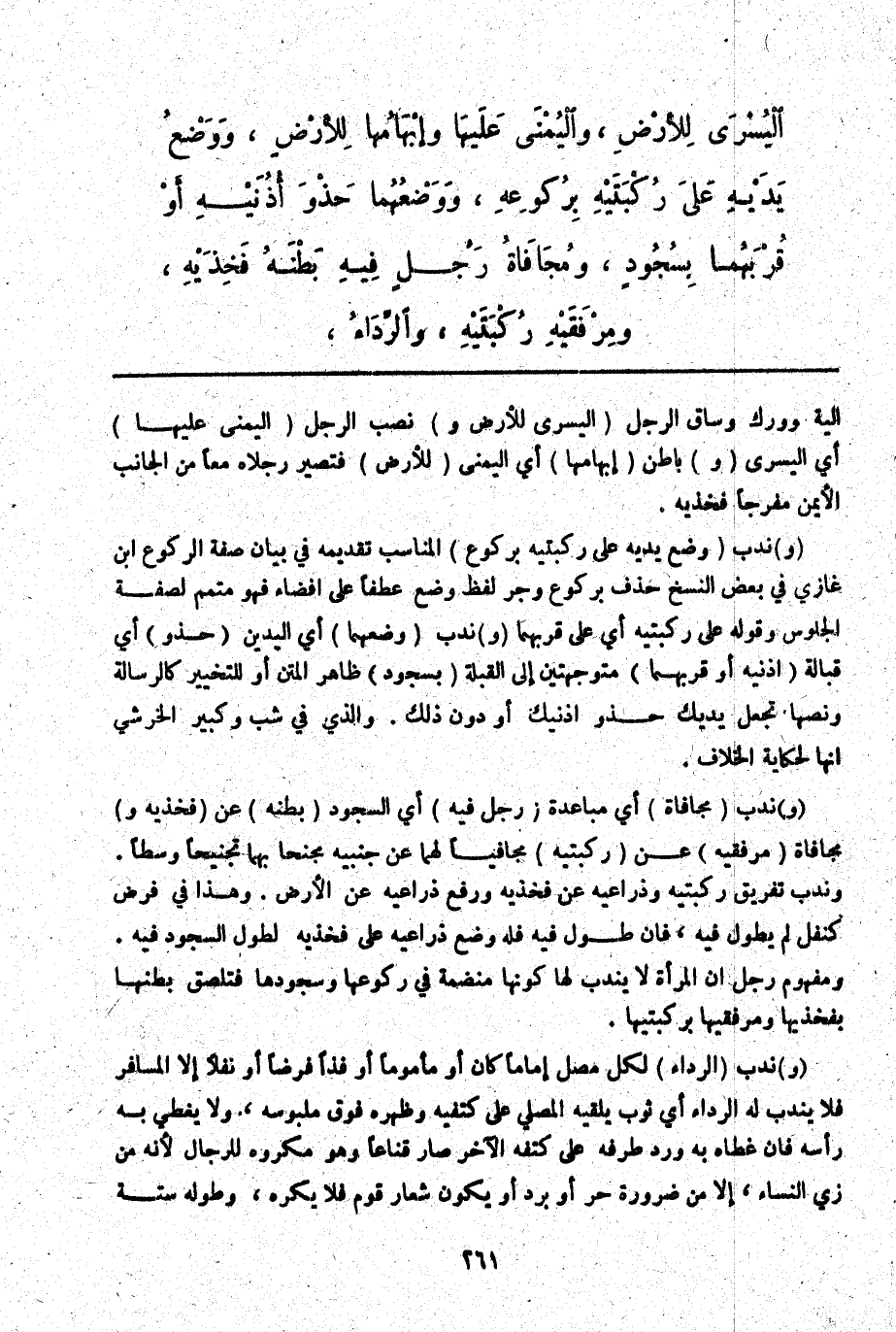 وَمُجَافَاةُ رَجُلٍ فِيهِ بَطْنَهُ فَخِذَيْهِ، وَمِرْفَقَيْهِ رُكْبَتَيْهِ، وَالرِّدَاءُ