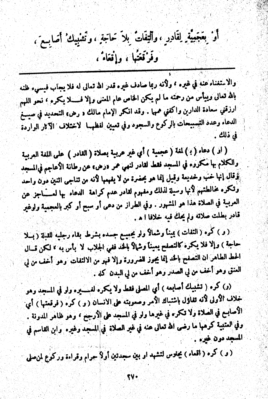 وَالْتِفَاتٌ بِلَا حَاجَةٍ، وَتَشْبِيكُ أَصَابِعَ، وَفَرْقَعَتُهَا، وَإِقْعَاءٌ،