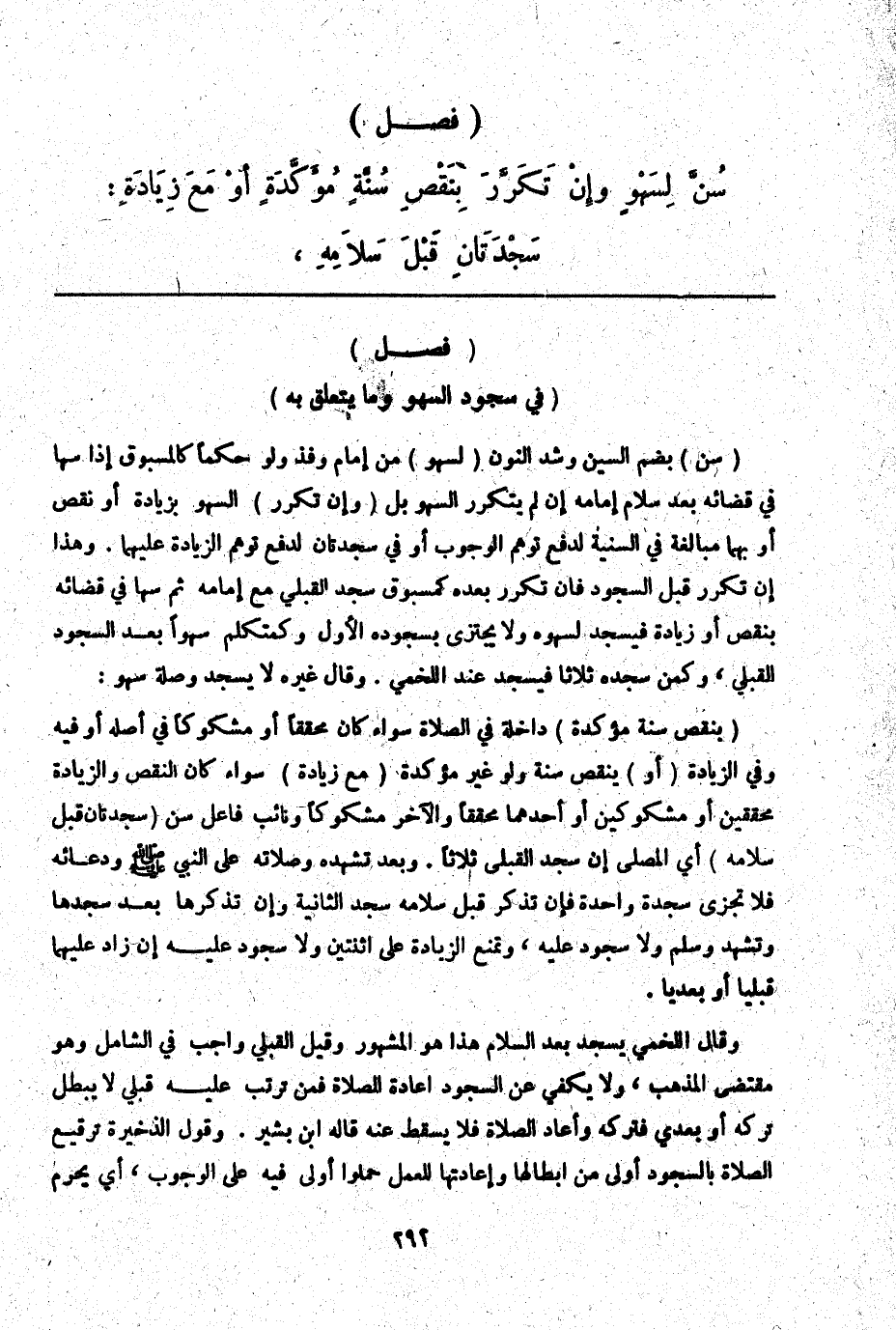 ـــــــــــــــــــــــــــــQ [فَصْلٌ فِي سُجُود السَّهْو وَمَا يَتَعَلَّق بِهِ]