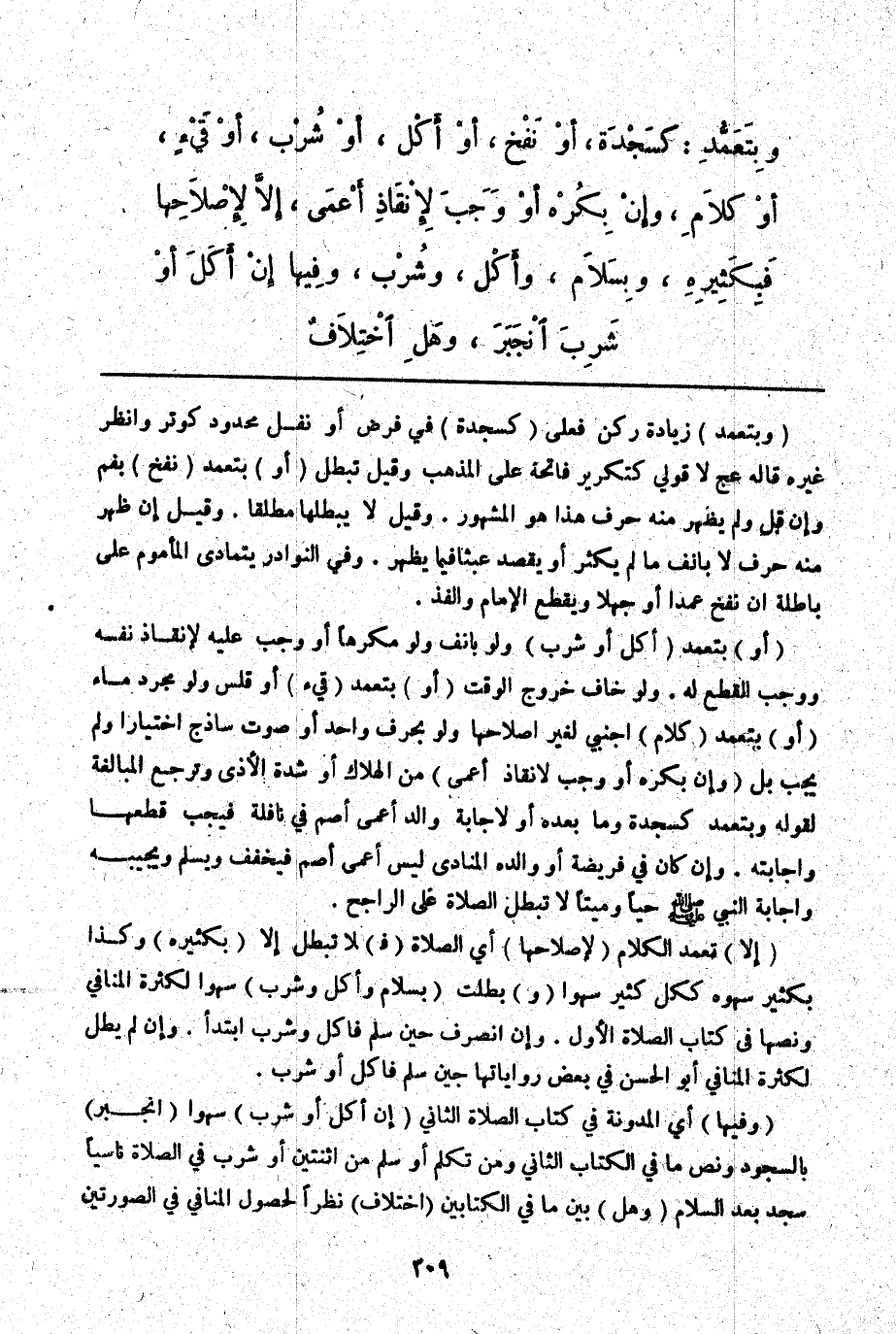 (وَفِيهَا) أَيْ الْمُدَوَّنَةِ فِي كِتَابِ الصَّلَاةِ الثَّانِي (إنْ أَكَلَ أَوْ شَرِبَ) سَهْوًا (انْجَبَرَ) بِالسُّجُودِ وَنَصُّ مَا فِي الْكِتَابِ الثَّانِي وَمَنْ تَكَلَّمَ أَوْ سَلَّمَ مِنْ اثْنَتَيْنِ أَوْ شَرِبَ فِي الصَّلَاةِ نَاسِيًا سَجَدَ بَعْدَ السَّلَامِ (وَهَلْ) بَيْنَ مَا فِي الْكِتَابَيْنِ (اخْتِلَافٌ) نَظَرًا لِحُصُولِ الْمُنَافِي فِي الصُّورَتَيْنِ