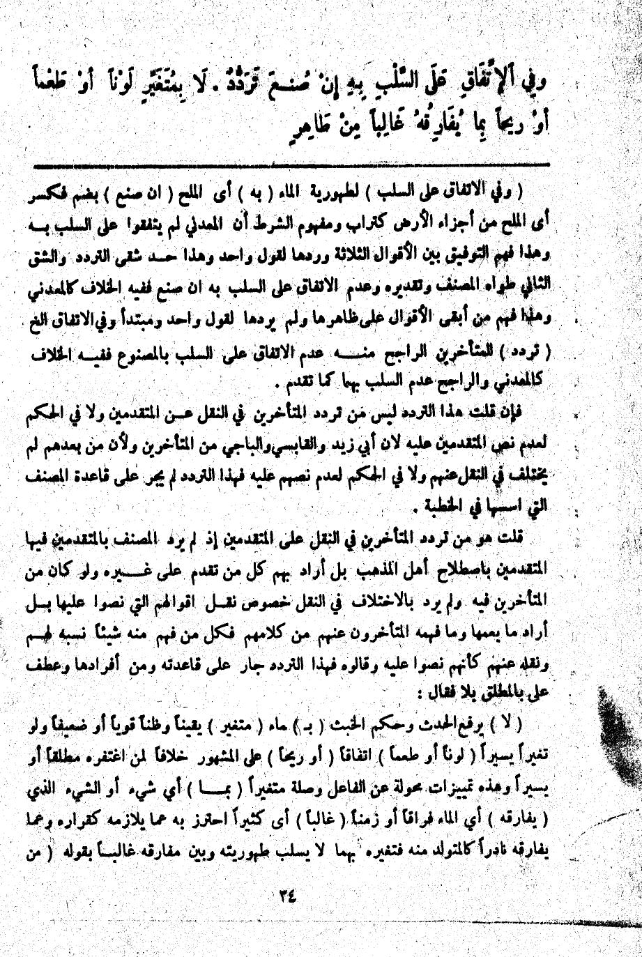 (تَرَدُّدٌ) لِلْمُتَأَخِّرِينَ الرَّاجِحُ مِنْهُ عَدَمُ الِاتِّفَاقِ عَلَى السَّلْبِ بِالْمَصْنُوعِ فَفِيهِ الْخِلَافُ كَالْمَعْدِنِيِّ وَالرَّاجِحُ عَدَمُ السَّلْبِ بِهِمَا كَمَا تَقَدَّمَ. فَإِنْ قُلْتَ: هَذَا التَّرَدُّدُ لَيْسَ مِنْ تَرَدُّدِ الْمُتَأَخِّرِينَ فِي النَّقْلِ عَنْ الْمُتَقَدِّمِينَ وَلَا فِي الْحُكْمِ لِعَدَمِ نَصِّ الْمُتَقَدِّمِينَ عَلَيْهِ؛ لِأَنَّ أَبَا زَيْدٍ وَالْقَابِسِيَّ وَالْبَاجِيِّ مِنْ الْمُتَأَخِّرِينَ وَلِأَنَّ مَنْ بَعْدَهُمْ لَمْ يَخْتَلِفْ فِي النَّقْلِ عَنْهُمْ وَلَا فِي الْحُكْمِ لِعَدَمِ نَصِّهِمْ عَلَيْهِ فَهَذَا التَّرَدُّدُ لَمْ يَجْرِ عَلَى قَاعِدَةِ الْمُصَنِّفِ الَّتِي أَسَّسَهَا فِي الْخُطْبَةِ.