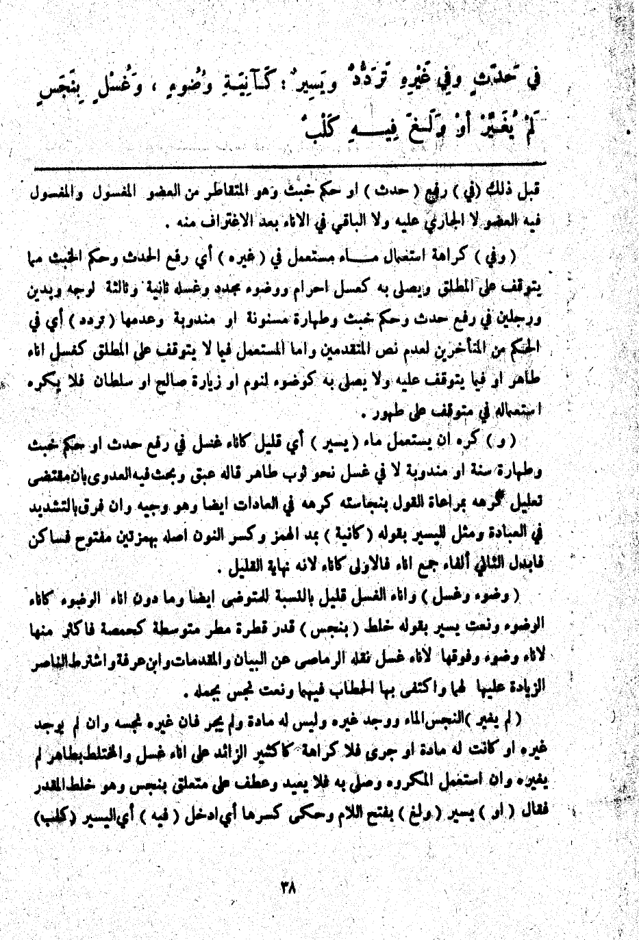 ـــــــــــــــــــــــــــــQقَبْلَ ذَلِكَ (فِي) رَفْعِ (حَدَثٍ) أَوْ حُكْمِ خَبَثٍ وَهُوَ الْمُتَقَاطِرُ مِنْ الْعُضْوِ الْمَغْسُولِ، وَالْمَغْسُولُ فِيهِ الْعُضْوُ لَا الْجَارِي عَلَيْهِ وَلَا الْبَاقِي فِي الْإِنَاءِ بَعْدَ الِاغْتِرَافِ مِنْهُ.