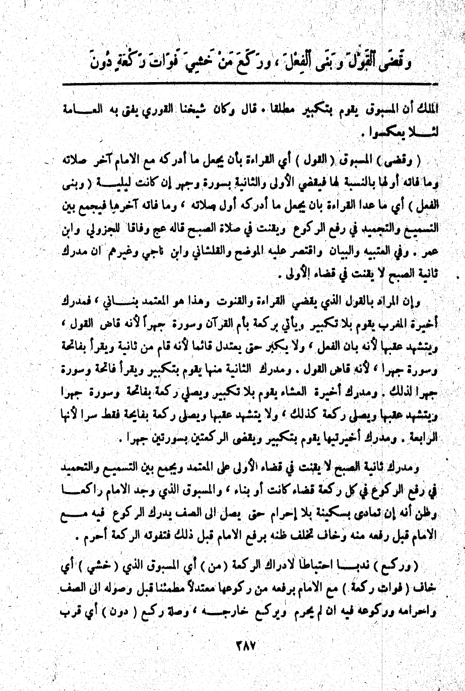 ـــــــــــــــــــــــــــــQأَنَّ الْمَسْبُوقَ يَقُومُ بِتَكْبِيرٍ مُطْلَقًا. قَالَ وَكَانَ شَيْخُنَا الْقُورِيُّ يُفْتِي بِهِ الْعَامَّةَ لِئَلَّا يَعْكِسُوا.