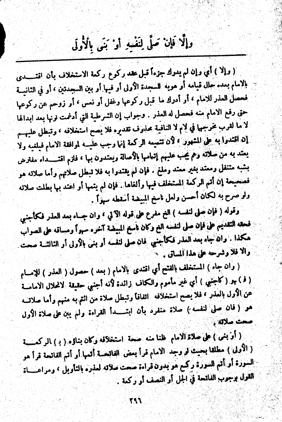 وَإِلَّا فَإِنْ صَلَّى لِنَفْسِهِ أَوْ بَنَى بِالْأُولَى