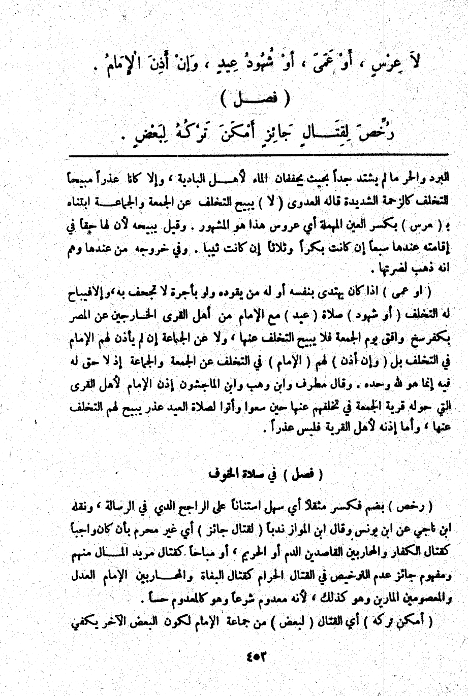 (فَصْلٌ) رُخِّصَ لِقِتَالٍ جَائِزٍ أَمْكَنَ تَرْكُهُ لِبَعْضٍ.