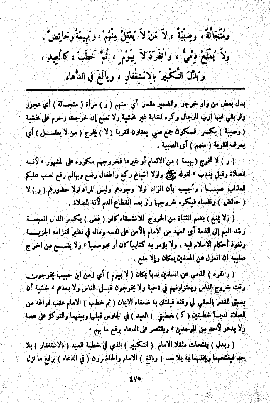 (وَ) لَا تَخْرُجُ (بَهِيمَةٌ) مِنْ الْأَنْعَامِ أَوْ غَيْرِهَا فَخُرُوجُهُمْ مَكْرُوهٌ عَلَى الْمَشْهُورِ؛ لِأَنَّهُ لِلصَّلَاةِ، وَقِيلَ يُنْدَبُ، لِقَوْلِهِ - صَلَّى اللَّهُ عَلَيْهِ وَسَلَّمَ - «وَلَوْلَا أَشْيَاخٌ رُكَّعٌ وَأَطْفَالٌ رُضَّعٌ وَبَهَائِمُ رُتَّعٌ لَصُبَّ عَلَيْكُمْ الْعَذَابُ صَبًّا» . وَأُجِيبَ بِأَنَّ الْمُرَادَ لَوْلَا وُجُودُهُمْ وَلَيْسَ الْمُرَادُ لَوْلَا حُضُورُهُمْ