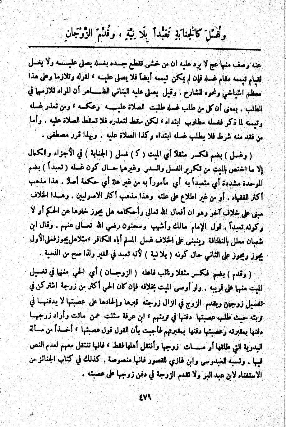 (وَغُسِلَ) بِضَمٍّ فَكَسْرٍ مُثَقَّلًا أَيْ الْمَيِّتُ (كَ) غُسْلِ (الْجَنَابَةِ) فِي الْإِجْزَاءِ وَالْكَمَالِ إلَّا مَا اخْتَصَّ بِالْمَيِّتِ مِنْ تَكْرِيرِ الْغُسْلِ وَالسِّدْرِ وَغَيْرِهِمَا حَالَ كَوْنِ غُسْلِهِ (تَعَبُّدًا) بِضَمِّ الْمُوَحَّدَةِ مُشَدَّدَةً أَيْ مُتَعَبَّدًا بِهِ أَيْ مَأْمُورًا بِهِ مِنْ غَيْرِ عِلَّةٍ أَيْ حِكْمَةٍ أَصْلًا. هَذَا مَذْهَبُ أَكْثَرِ الْفُقَهَاءِ. أَوْ مِنْ غَيْرِ اطِّلَاعٍ عَلَى عِلَّتِهِ، وَهَذَا مَذْهَبُ أَكْثَرِ الْأُصُولِيِّينَ. وَهَذَا الْخِلَافُ مَبْنِيٌّ عَلَى خِلَافٍ آخَرَ، وَهُوَ أَنَّ أَفْعَالَ اللَّهِ تَعَالَى وَأَحْكَامَهُ هَلْ يَجُوزُ خُلُوُّهَا عَنْ الْحُكْمِ أَوْ لَا؟ وَكَوْنُهُ تَعَبُّدًا. قَوْلُ الْإِمَامِ مَالِكٍ وَأَشْهَبَ وَسَحْنُونٍ - رَضِيَ اللَّهُ تَعَالَى عَنْهُمْ -. وَقَالَ ابْنُ شَعْبَانَ مُعَلِّلٌ بِالنَّظَافَةِ وَيَنْبَنِي عَلَى الْخِلَافِ غُسْلُ الْمُسْلِمِ أَبَاهُ الْكَافِرَ، مَثَلًا هَلْ يَجُوزُ؟ . فَعَلَى الْأَوَّلِ يَجُوزُ وَيَجُوزُ عَلَى الثَّانِي حَالَ كَوْنِهِ (بِلَا نِيَّةٍ) ؛ لِأَنَّهُ تَعَبُّدٌ فِي الْغَيْرِ وَلِذَا صَحَّ مِنْ الذِّمِّيَّةِ.