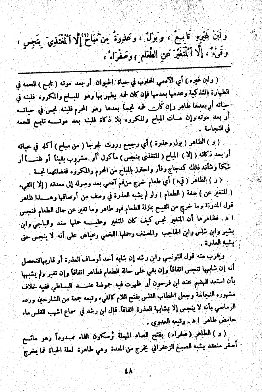 ـــــــــــــــــــــــــــــQ (وَلَبَنُ غَيْرِهِ) أَيْ الْآدَمِيِّ الْمَحْلُوبِ فِي حَيَاةِ الْحَيَوَانِ، أَوْ بَعْدَ مَوْتِهِ (تَابِعٌ) لِلَحْمِهِ فِي الطَّهَارَةِ بِالتَّذْكِيَةِ وَعَدَمِهَا بِعَدَمِهَا فَإِنْ كَانَ لَحْمُهُ يَطْهُرُ بِهَا وَهُوَ الْمُبَاحُ، وَالْمَكْرُوهُ فَلَبَنُهُ فِي حَيَاتِهِ، أَوْ بَعْدَهَا طَاهِرٌ، وَإِنْ كَانَ لَحْمُهُ نَجِسًا بَعْدَهَا وَهُوَ الْمُحَرَّمُ فَلَبَنُهُ نَجِسٌ فِي حَيَاتِهِ أَوْ بَعْدَ مَوْتِهِ، وَإِنْ مَاتَ الْمُبَاحُ، وَالْمَكْرُوهُ بِلَا ذَكَاةٍ فَلَبَنُهُ بَعْدَ مَوْتِهِ تَابِعٌ لِلَحْمِهِ فِي النَّجَاسَةِ.
