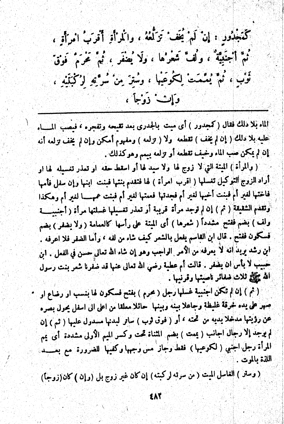 ـــــــــــــــــــــــــــــQالْمَاءِ بِلَا دَلْكٍ فَقَالَ (كَمَجْدُورٍ) أَيْ مَيِّتٍ بِالْجُدَرِيِّ بَعْدَ تَقَيُّحِهِ وَتَفَجُّرِهِ، فَيُصَبُّ الْمَاءُ عَلَيْهِ بِلَا دَلْكٍ (إنْ لَمْ يُخَفْ) تَقَطُّعُهُ وَلَا (تَزَلُّعُهُ) وَمَفْهُومُ أَمْكَنَ، وَإِنْ لَمْ يُخَفْ تَزَلُّعُهُ أَنَّهُ إنْ لَمْ يُمْكِنْ صَبُّ الْمَاءِ وَخِيفَ تَقَطُّعُهُ أَوْ تَزَلُّعُهُ يُيَمَّمُ، وَهُوَ كَذَلِكَ.