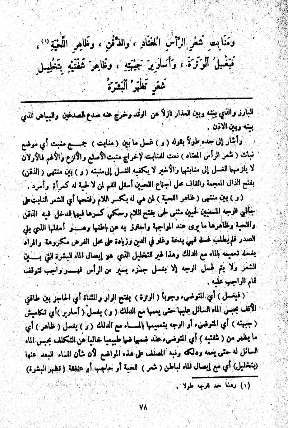 ـــــــــــــــــــــــــــــQالْبَارِزِ وَاَلَّذِي بَيْنَهُ وَبَيْنَ الْعِذَارِ نَازِلًا عَنْ الْوَتَدِ وَخَرَجَ عَنْهُ صَدْعُ الصُّدْغَيْنِ وَالْبَيَاضُ الَّذِي بَيْنَهُ وَبَيْنَ الْأُذُنِ.