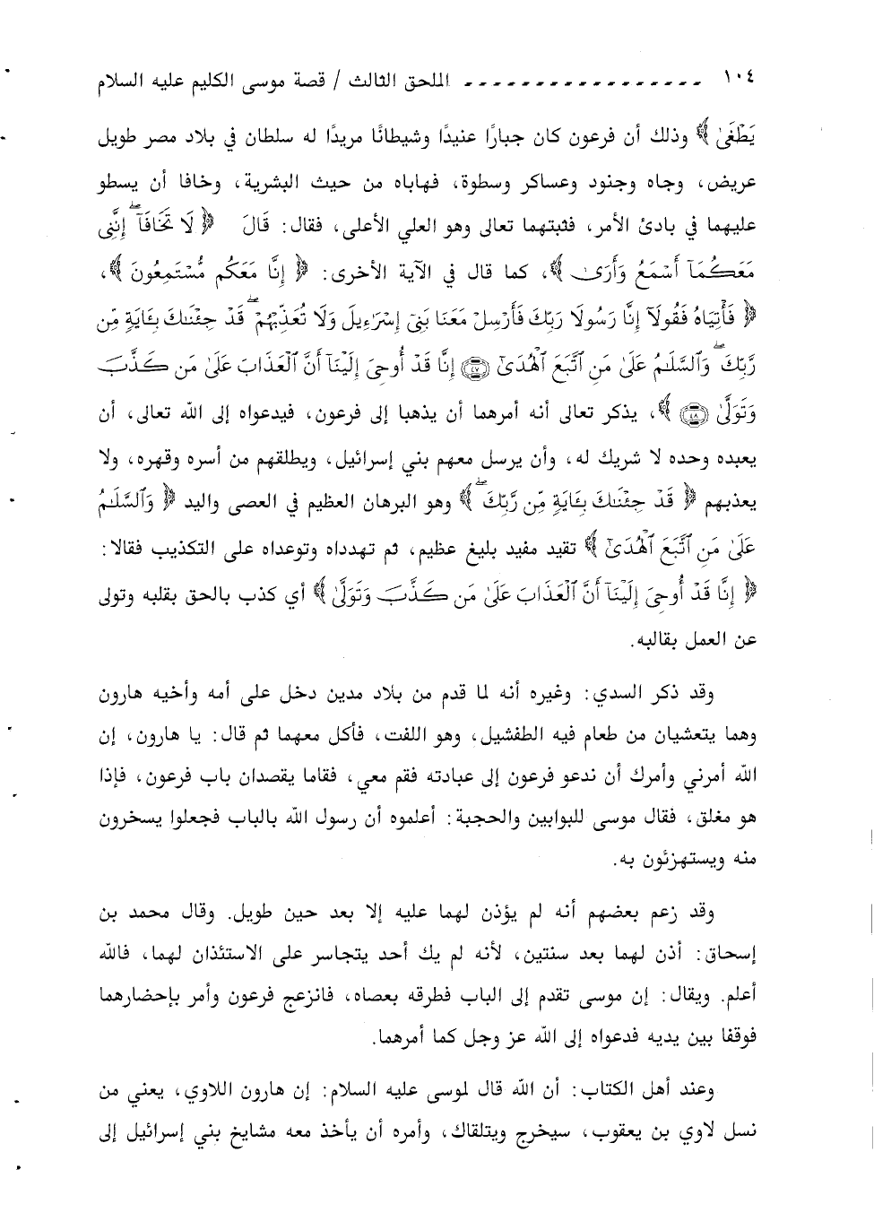 يَطْغى وذلك أن فرعون كان جبارا عنيدا وشيطانا مريدا له سلطان في بلاد مصر طويل عريض، وجاه وجنود وعساكر وسطوة، فهاباه من حيث البشرية، وخافا أن يسطو عليهما في بادئ الأمر، فثبتهما تعالى وهو العلي الأعلى، فقال: قال لا تَخافا إِنَّنِي مَعَكُما أَسْمَعُ وأَرى، كما قال في الآية الأخرى: إِنَّا مَعَكُمْ مُسْتَمِعُونَ، فَاتِياهُ فَقُولا إِنَّا رَسُولا رَبِّكَ فَأَرْسِلْ مَعَنا بَنِي إِسْرائِيلَ ولا تُعَذِّبْهُمْ قَدْ جِئْناكَ بِآيَةٍ مِنْ رَبِّكَ والسَّلامُ عَلى مَنِ اتَّبَعَ الْهُدى (47) إِنَّا قَدْ أُوحِيَ إِلَيْنا أَنَّ الْعَذابَ عَلى مَنْ كَذَّبَ وتَوَلَّى (48)، يذكر تعالى أنه أمرهما أن يذهبا إلى فرعون، فيدعواه إلى اللّه تعالى، أن يعبده وحده لا شريك له، وأن يرسل معهم بني إسرائيل، ويطلقهم من أسره وقهره، ولا يعذبهم قَدْ جِئْناكَ بِآيَةٍ مِنْ رَبِّكَ وهو البرهان العظيم في العصى واليد والسَّلامُ عَلى مَنِ اتَّبَعَ الْهُدى تقيد مفيد بليغ عظيم، ثم تهدداه وتوعداه على التكذيب فقالا: