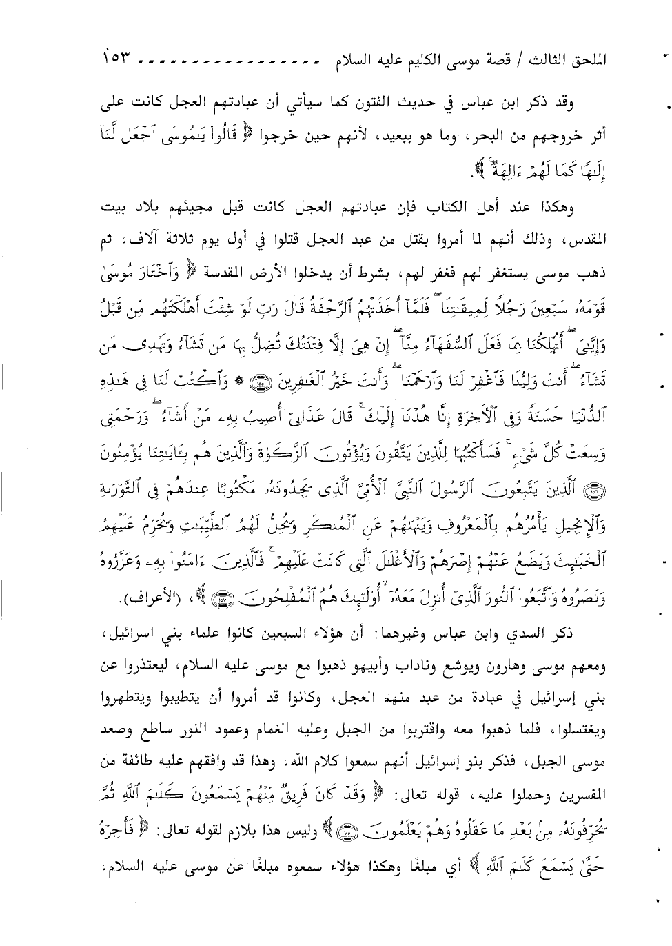 وهكذا عند أهل الكتاب فإن عبادتهم العجل كانت قبل مجيئهم بلاد بيت المقدس، وذلك أنهم لما أمروا بقتل من عبد العجل قتلوا في أول يوم ثلاثة آلاف، ثم ذهب موسى يستغفر لهم فغفر لهم، بشرط أن يدخلوا الأرض المقدسة واخْتارَ مُوسى قَوْمَهُ سَبْعِينَ رَجُلًا لِمِيقاتِنا فَلَمَّا أَخَذَتْهُمُ الرَّجْفَةُ قالَ رَبِّ لَوْ شِئْتَ أَهْلَكْتَهُمْ مِنْ قَبْلُ وإِيَّايَ أَتُهْلِكُنا بِما فَعَلَ السُّفَهاءُ مِنَّا إِنْ هِيَ إِلَّا فِتْنَتُكَ تُضِلُّ بِها مَنْ تَشاءُ وتَهْدِي مَنْ تَشاءُ أَنْتَ وَلِيُّنا فَاغْفِرْ لَنا وارْحَمْنا وأَنْتَ خَيْرُ الْغافِرِينَ (155) * واكْتُبْ لَنا فِي هذِهِ الدُّنْيا حَسَنَةً وفِي الْآخِرَةِ إِنَّا هُدْنا إِلَيْكَ قالَ عَذابِي أُصِيبُ بِهِ مَنْ أَشاءُ ورَحْمَتِي وَسِعَتْ كُلَّ شَيْءٍ فَسَأَكْتُبُها لِلَّذِينَ يَتَّقُونَ ويُؤْتُونَ الزَّكاةَ والَّذِينَ هُمْ بِآياتِنا يُؤْمِنُونَ (156) الَّذِينَ يَتَّبِعُونَ الرَّسُولَ النَّبِيَّ الْأُمِّيَّ الَّذِي يَجِدُونَهُ مَكْتُوباً عِنْدَهُمْ فِي التَّوْراةِ والْإِنْجِيلِ يَامُرُهُمْ بِالْمَعْرُوفِ ويَنْهاهُمْ عَنِ الْمُنْكَرِ ويُحِلُّ لَهُمُ الطَّيِّباتِ ويُحَرِّمُ عَلَيْهِمُ الْخَبائِثَ ويَضَعُ عَنْهُمْ إِصْرَهُمْ والْأَغْلالَ الَّتِي كانَتْ عَلَيْهِمْ فَالَّذِينَ آمَنُوا بِهِ وعَزَّرُوهُ ونَصَرُوهُ واتَّبَعُوا النُّورَ الَّذِي أُنْزِلَ مَعَهُ أُولئِكَ هُمُ الْمُفْلِحُونَ (157)، (الأعراف).