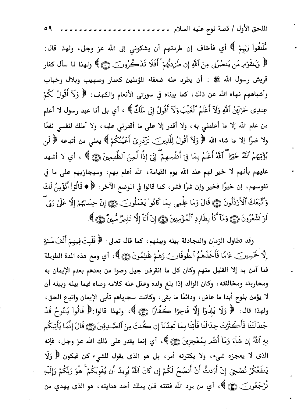 وقد تطاول الزمان والمجادلة بينه وبينهم، كما قال تعالى: فَلَبِثَ فِيهِمْ أَلْفَ سَنَةٍ إِلَّا خَمْسِينَ عاماً فَأَخَذَهُمُ الطُّوفانُ وهُمْ ظالِمُونَ (14)، أي ومع هذه المدة الطويلة فما آمن به إلا القليل منهم وكان كل ما انقرض جيل وصوا من بعدهم بعدم الإيمان به ومحاربته ومخالفته، وكان الوالد إذا بلغ ولده وعقل عنه كلامه وصاه فيما بينه وبينه أن لا يؤمن بنوح أبدا ما عاش، ودائما ما بقى، وكانت سجاياهم تأبى الإيمان واتباع الحق، ولهذا قال: ولا يَلِدُوا إِلَّا فاجِراً كَفَّاراً (27)، ولهذا قالوا: قالُوا يا نُوحُ قَدْ جادَلْتَنا فَأَكْثَرْتَ جِدالَنا فَاتِنا بِما تَعِدُنا إِنْ كُنْتَ مِنَ الصَّادِقِينَ (32) قالَ إِنَّما يَاتِيكُمْ بِهِ اللَّهُ إِنْ شاءَ وما أَنْتُمْ بِمُعْجِزِينَ (33)، أي إنما يقدر على ذلك اللّه عز وجل، فإنه الذى لا يعجزه شىء، ولا يكترثه أمر، بل هو الذى يقول للشيء كن فيكون ولا يَنْفَعُكُمْ نُصْحِي إِنْ أَرَدْتُ أَنْ أَنْصَحَ لَكُمْ إِنْ كانَ اللَّهُ يُرِيدُ أَنْ يُغْوِيَكُمْ هُوَ رَبُّكُمْ وإِلَيْهِ تُرْجَعُونَ (34)، أي من يرد اللّه فتنته فلن يملك أحد هدايته، هو الذى يهدي من