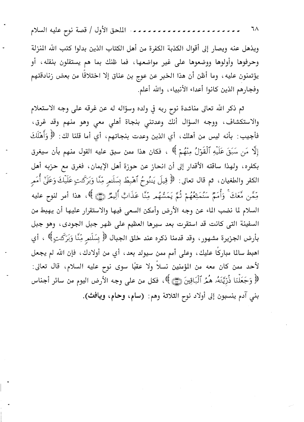 وَجَعَلْنا ذُرِّيَّتَهُ هُمُ الْباقِينَ (77)، فكل من على وجه الأرض اليوم من سائر أجناس بني آدم ينسبون إلى أولاد نوح الثلاثة وهم: (سام، وحام، ويافث).