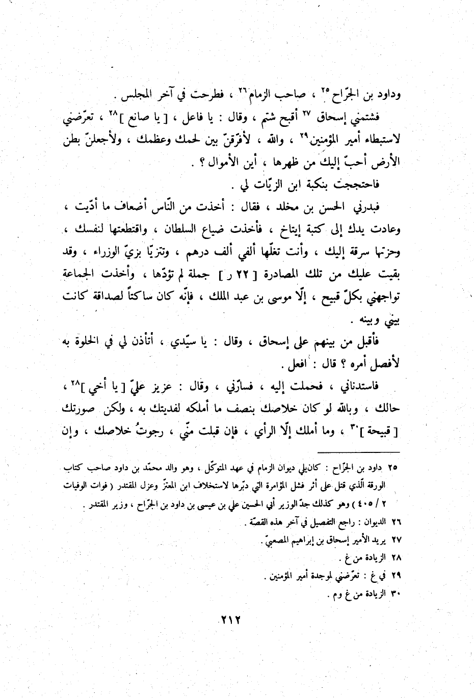 وَدَاوُد بن الْجراح، صَاحب الزِّمَام، فطرحت فِي آخر الْمجْلس.