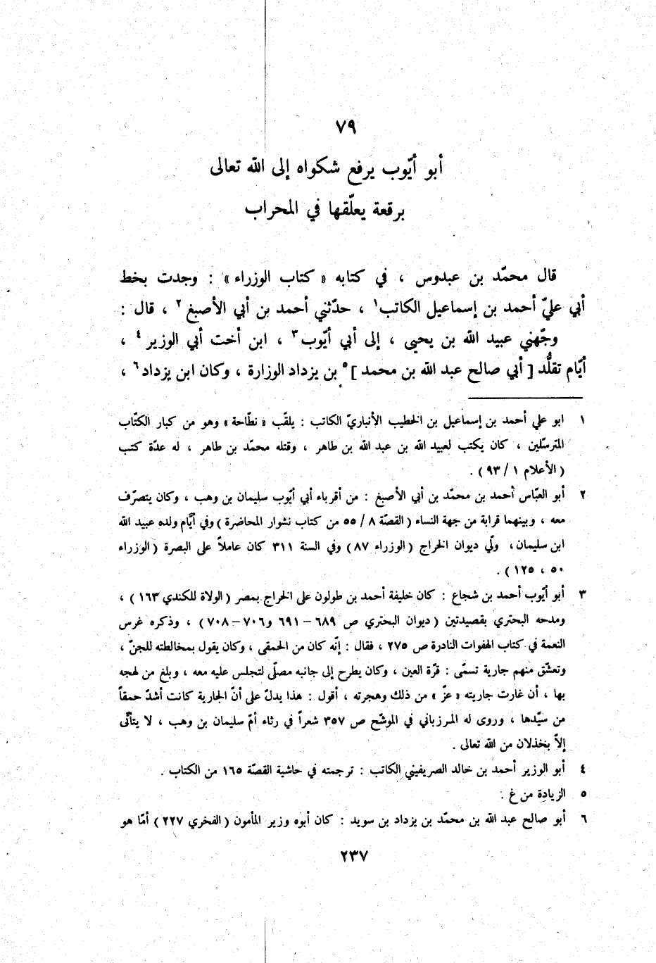 قَالَ: مُحَمَّد بن عَبدُوس، فِي كِتَابه (كتاب الوزراء) : وجدت بِخَط أبي عَليّ أَحْمد بن إِسْمَاعِيل الْكَاتِب، حَدثنِي أَحْمد بن أبي الْأَصْبَغ، قَالَ: وجهني عبيد الله بن يحيى، إِلَى أبي أَيُّوب، ابْن أُخْت أبي الْوَزير، أَيَّام تقلد أبي صَالح عبد الله بن مُحَمَّد بن يزْدَاد الوزارة، وَكَانَ ابْن يزْدَاد،