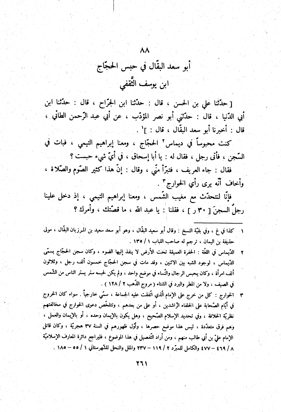 أَبُو سعد الْبَقَّال فِي حبس الْحجَّاج بن الْجراح يُوسُف الثَّقَفِيّ