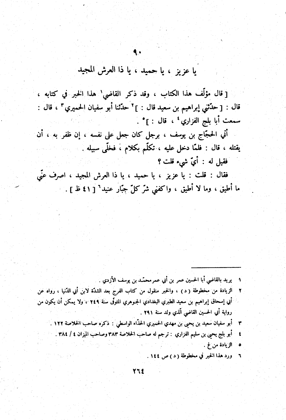 فَقيل لَهُ: أَي شَيْء قلت؟ فَقَالَ: قلت: يَا عَزِيز، يَا حميد، يَا ذَا الْعَرْش الْمجِيد، اصرف عني مَا أُطِيق، وَمَا لَا أُطِيق، واكفني شَرّ كل جَبَّار عنيد.