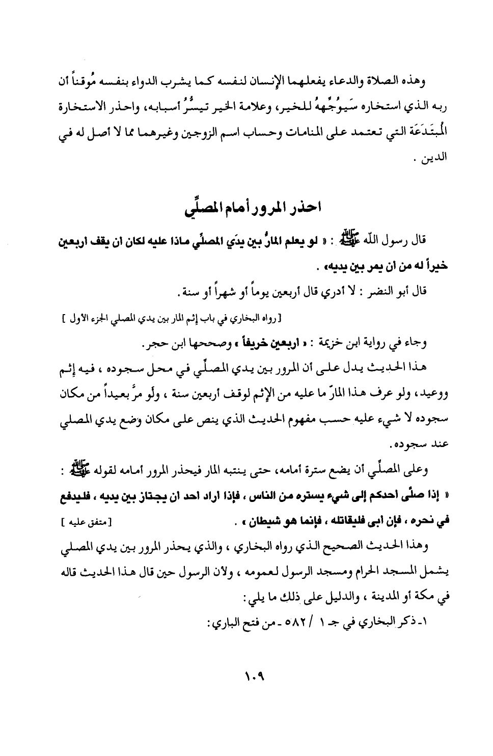 قال أبو النضر: لا أدري قال أربعين يومًا أو شهرًا أو سنة. [رواه البخاري في باب إثم المار بين يدي المصلي الجزء الأول]