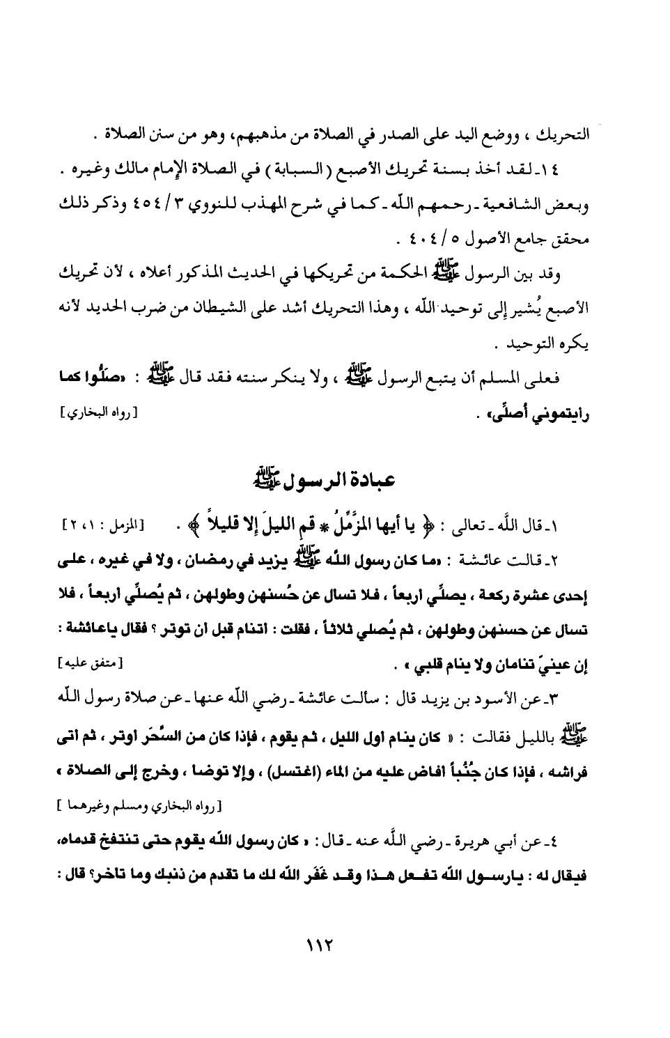 14 - لقد أخذ بسنة تحريك الأصبع (السبابة) في الصلاة الإِمام مالك وغيره. وبعض الشافعية -رحمهم الله- كما في شرح المهذب للنووي 3/ 454 وذكر ذلك محقق جامع الأصول 5/ 404.