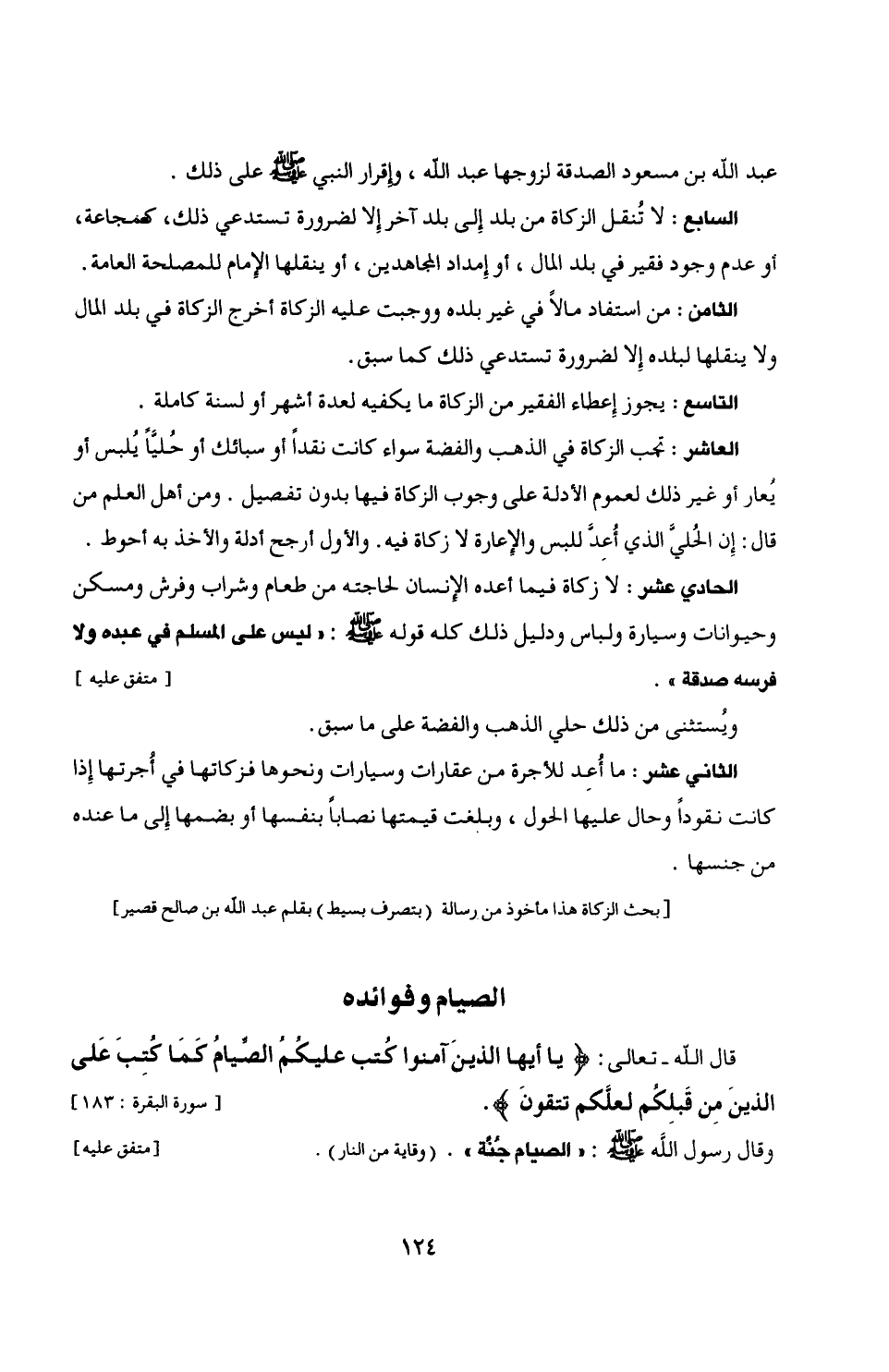 عبد الله بن مسعود الصدقة لزوجها عبد الله، وإقرار النبي - صلى الله عليه وسلم - على ذلك.