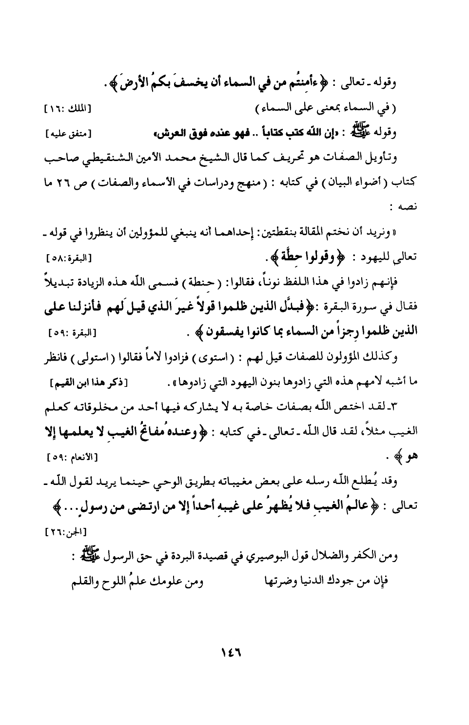 وتأويل الصفات هو تحريف كما قال الشيخ محمد الأمين الشنقيطي صاحب كتاب (أضواء البيان) في كتابه: (منهج ودراسات في الأسماء والصفات) ص 26 ما نصه: