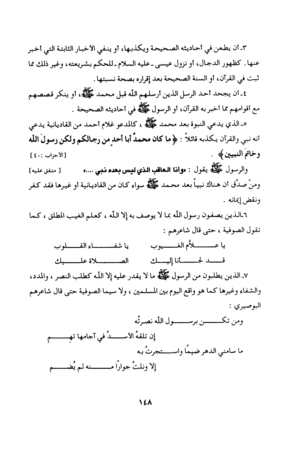 6 - الذين يصفون رسول الله بما لا يوسف به إلا الله، كعلم الغيب المطلق، كما تقول الصوفية، حتى قال شاعرهم: