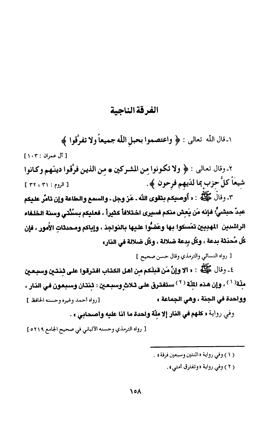 1 - قال الله تعالى: {واعتصموا بحبلِ الله جميعًا ولا تفرَّقوا} [آل عمران: 103]