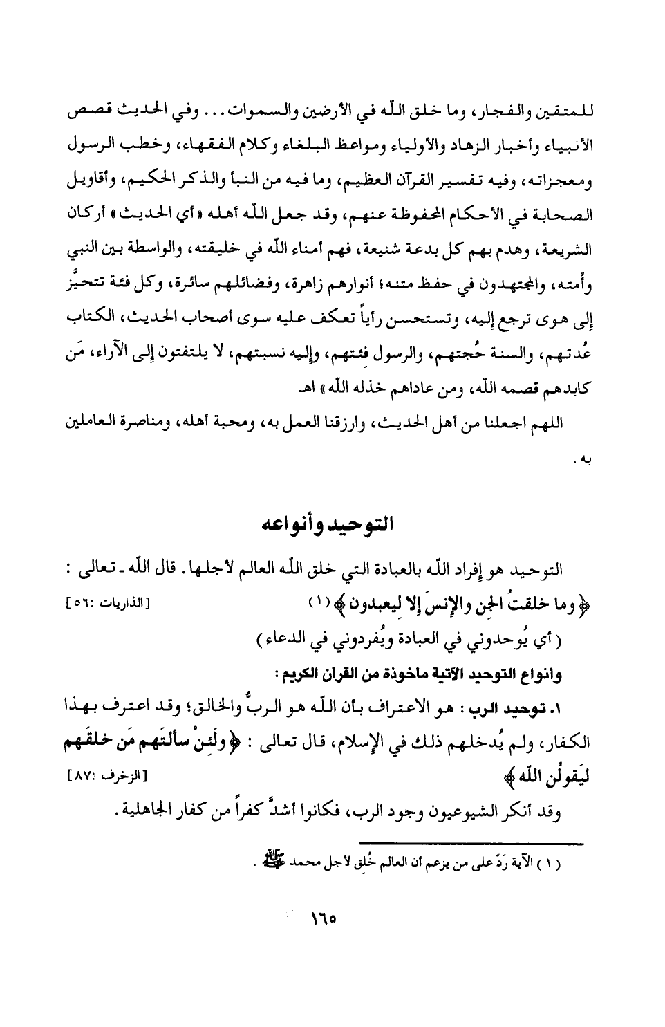 وأنواع التوحيد الآتية مأخوذة من القرآن الكريم: