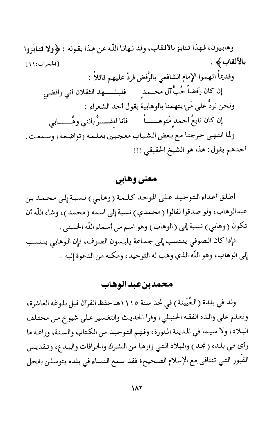 ونحن نردُّ على مَن يتهمنا بالوهابية بقول أحد الشعراء: