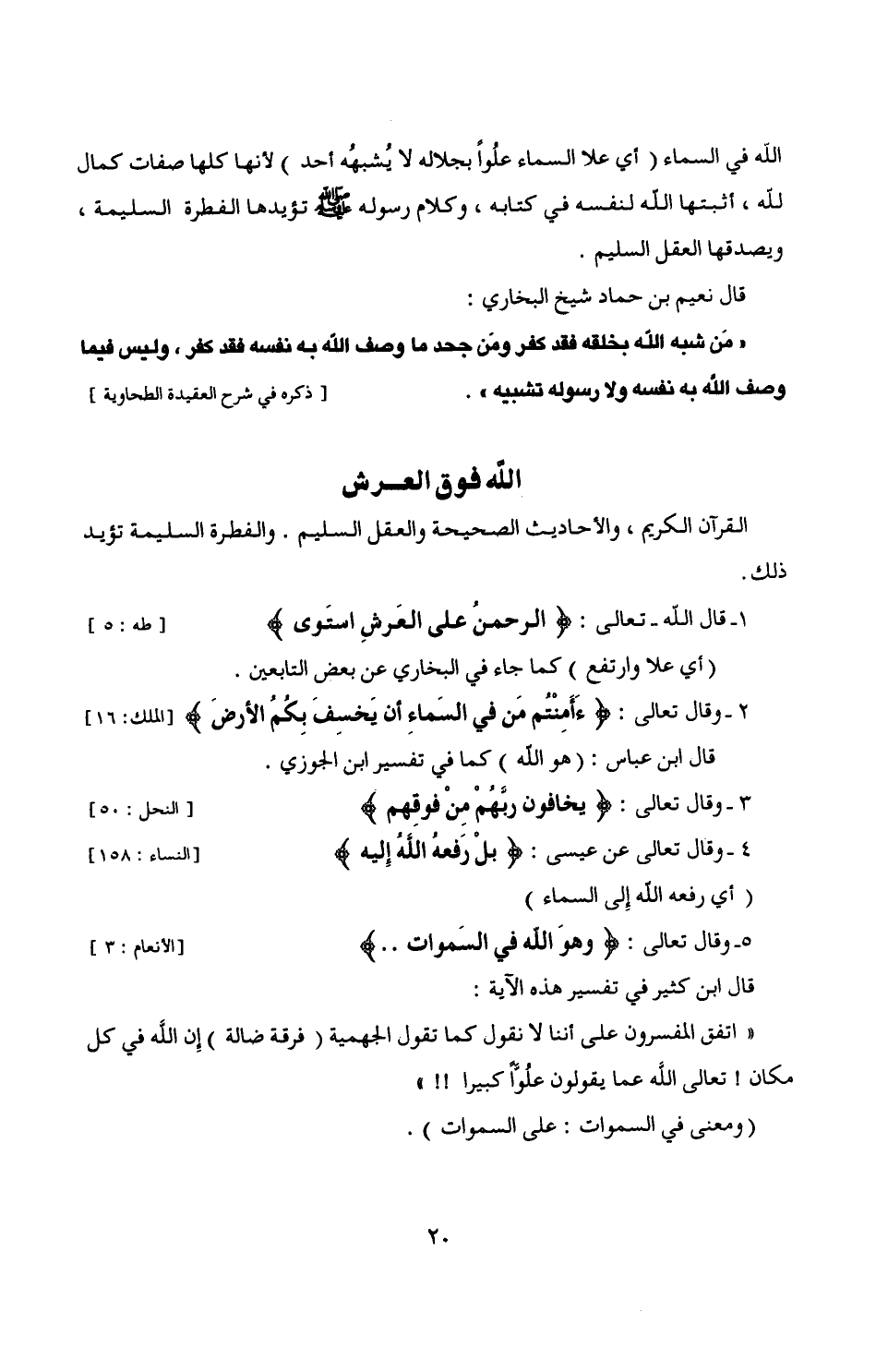 "اتفق المفسرون على أننا لا نقول كما تقول الجهمية (فرقة ضالة) إِن الله في كل مكان! تعالى الله عما يقولون علُوًّا كبيرا!! "