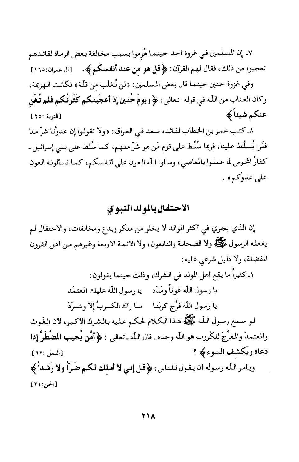 لو سمع رسول الله - صلى الله عليه وسلم - هذا الكلام لحكم عليه بالشرك الأكبر، لأن الغَوث والمعتمدَ والمفرِّجَ للكُروب هو الله وحده. قال الله - تعالى: {أَمَّنْ يُجِيبُ الْمُضْطَرَّ إِذَا دَعَاهُ وَيَكْشِفُ السُّوءَ}؟ [النمل: 62]