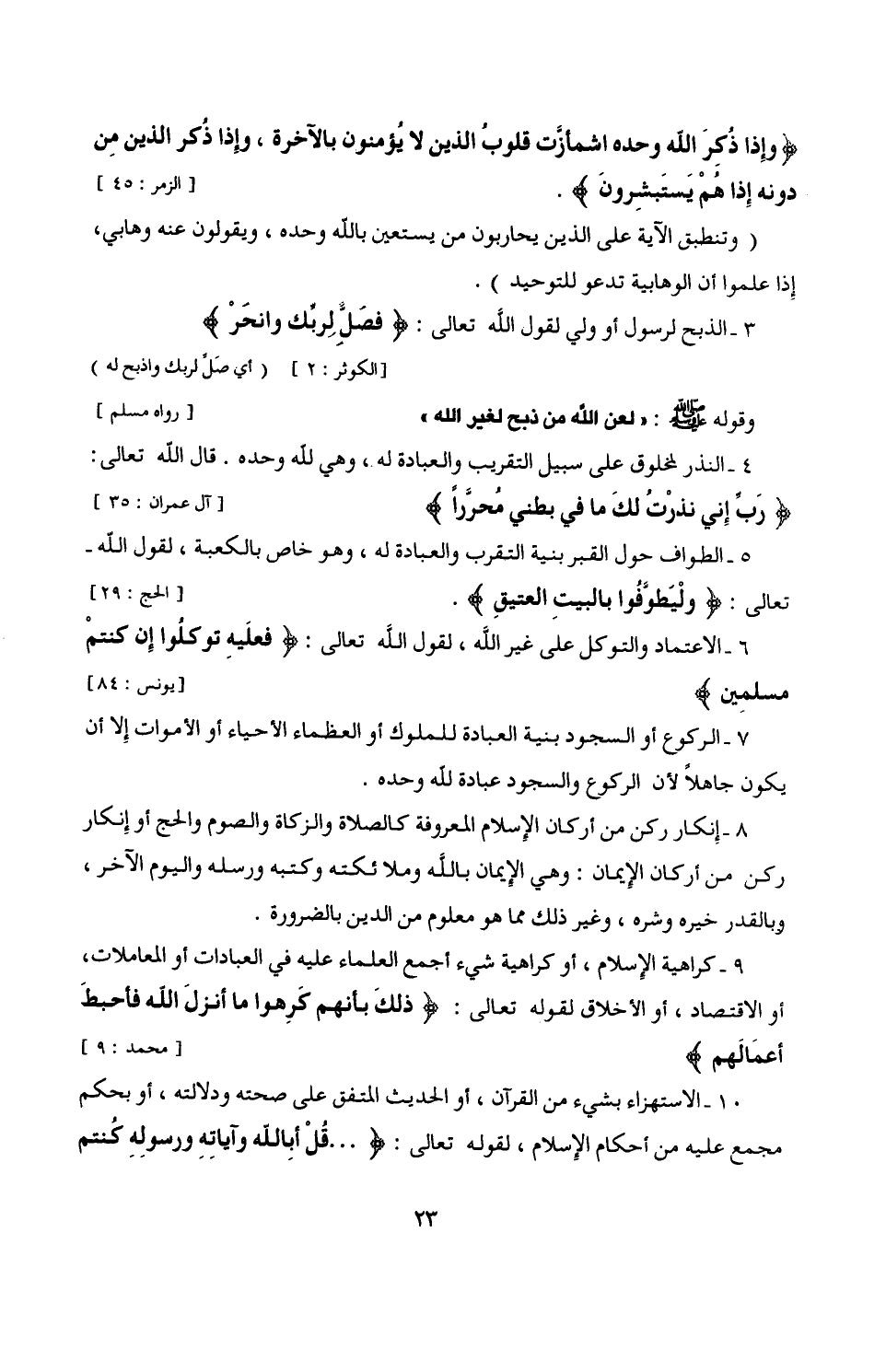 10 - الاستهزاء بشيء من القرآن، أو الحديث المتفق على صحته ودلالته، أو بحكم مجمع عليه من أحكام الإِسلام، لقوله تعالى: {قُلْ أَبِاللَّهِ وَآيَاتِهِ وَرَسُولِهِ كُنْتُمْ