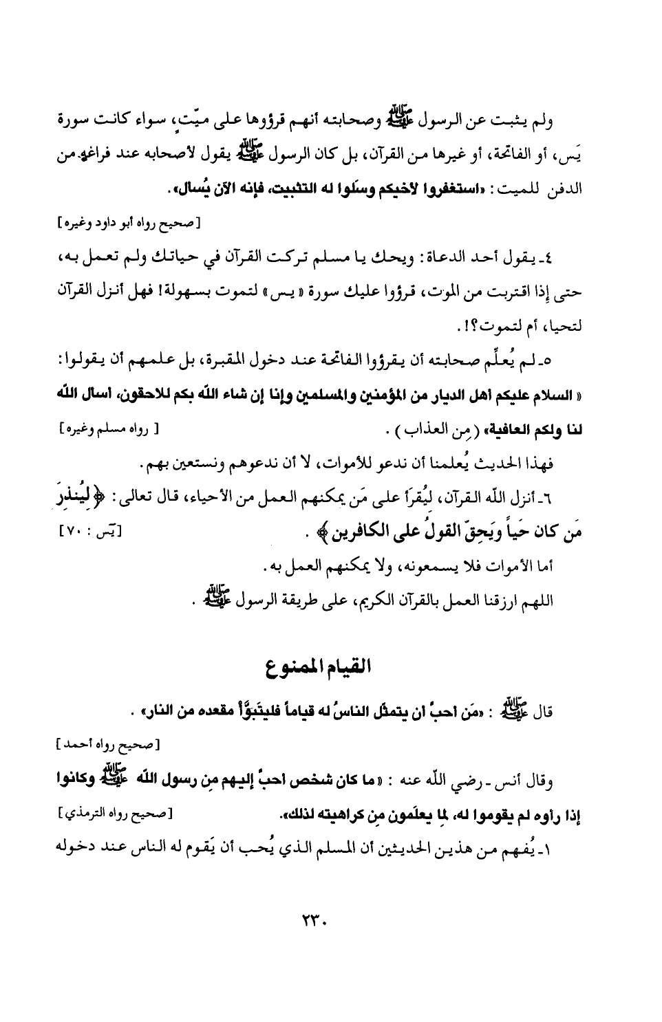 6 - أنزل الله القرآن، لِيُقرَأ على مَنْ يمكنهم العمل من الأحياء، قال تعالى: {لِيُنْذِرَ مَنْ كَانَ حَيًّا وَيَحِقَّ الْقَوْلُ عَلَى الْكَافِرِينَ} [يس: 70]